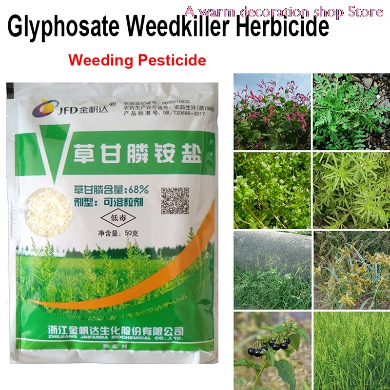 Глифосат аммония является безостаточным гербицидом.Вес: 50 г растворимый гранулированный гербицидПодходит для использования на суше без азотных удобренийОн эффективен для многолетних сорняков корней и используется в резиновой, шелковистой, чайной, садовой и сахарной палочке.Он ингибирует синтазу фосфата валерина на основе ацетона Энола в растениях, тем самым препятствуя преобразованию валерина в фенилаланин, тирозин и триптофан, что приводит к нарушению синтеза белка и смерти растений.Аммония глифосат имеет убивающий эффект после того, как он контактирует с зеленой тканью.1g + 0,5 кг (0.5L)Использование: 1. Дозировка psyllium, малого навеса и comfrey составляет 15 г/100 м на основе активного ингредиента.2, 20 г/100 м для белой мулле, твердой костяной травы и тростника, 4 кг для воды,3. Равномерный направленный спрей на стеблях и листьях сорняков. Как правило, сорняки из широких листьев находятся на ранней стадии прорастания или цветения, а травы находятся в поздней стадии стыковки или ранней окраски.4. Растения, которые были отрезаны от стеблей и листьев, должны быть применены до тех пор, пока сорняки не будут достаточными, чтобы иметь достаточно новых листьев.5, предотвращение многолетних сорняков один раз в дозе 2 раза, 5 дней интервальное применение может улучшить контроль.6. Для управления яблочными садами, садами персика, виноградниками, садами груши, чайными садами, садами тутового дерева и сельскими садами для отдыха, против травы лисохвост, см. Mai Niang, goosegrass, crabgrass, cocklebur, таракан, таракан, свиная лихорадка ждут годовых сорняков.Роль: он может контролировать более 40 видов растений, таких как моноциклоноз и дикотилдон, годовой и многолетний, травянистый и кустарник. Аммония глифосат быстро теряет свою активность, когда он сочетается с ионами металла, такими как железо и алюминий.Используется в резиновых садах для управления соломинкой и другими сорняками, резиновые деревья можно использовать 1 год назад, а старые резиновые деревья увеличивают производство. Постепенно продвигается в лесном хозяйстве, садах, садах тутового дерева, чайных садах, рисе, пшенице, рисе и рапсе.Такие как сорняки, лисохвост, девица, гусиная трава, крабграсс, поросята и другие ежегодные сорняки, дозировка составляет 10 г/100 м на основе активного ингредиента.