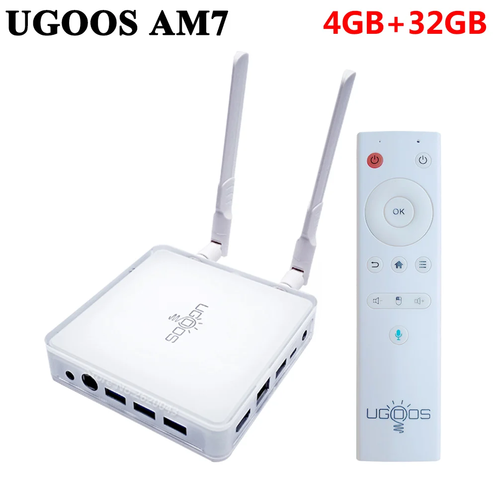 ТВ-приставка UGOOS AM7 Amlogic S905X4 Smart Android 11 DDR4 4 ГБ ОЗУ 32 Гб ПЗУ Wi-Fi 6 1000M LAN Bluetooth 5,0 4K HD медиаплеер