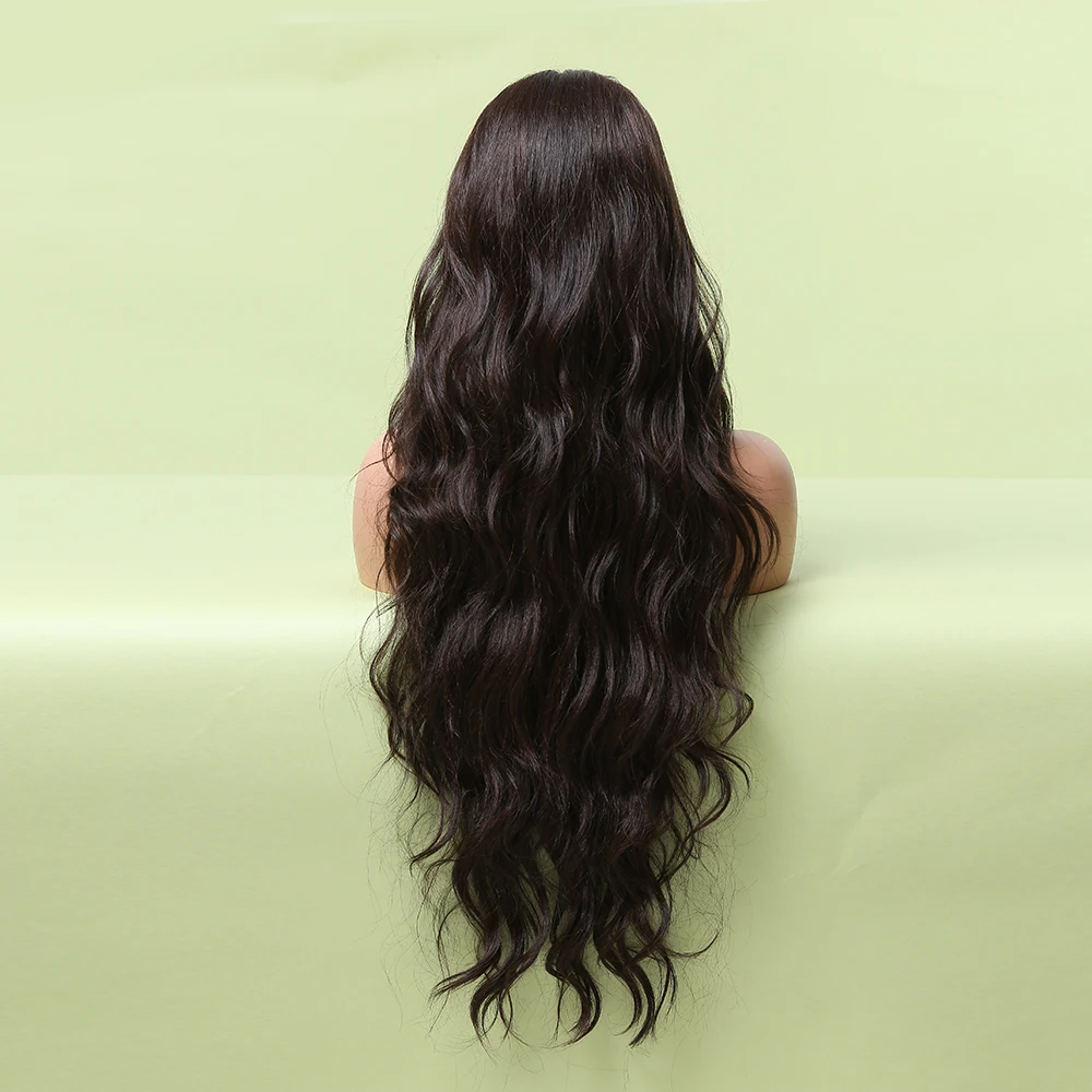 Длинный черный цвет, кружевной передний синтетический парик для волос, объемная волна, Т-образная часть, прозрачный кружевной парик для черных женщин, высокая плотность, кружевной передний парик