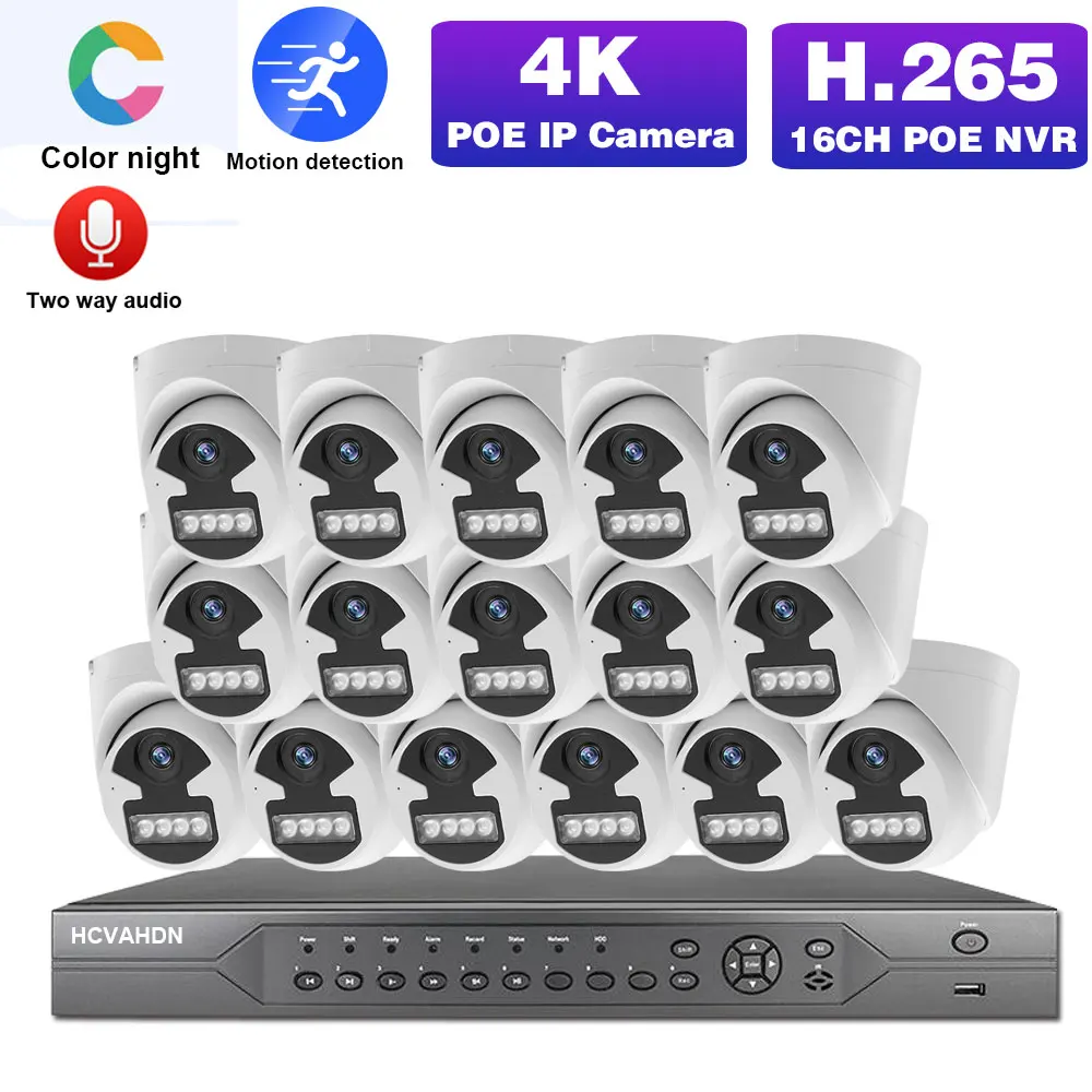 Система видеонаблюдения 4K Ultra HD POE, 16-канальный комплект домашнего видеорегистратора, купольная IP-камера безопасности, комплект камер видеонаблюдения с аудио 8 МП