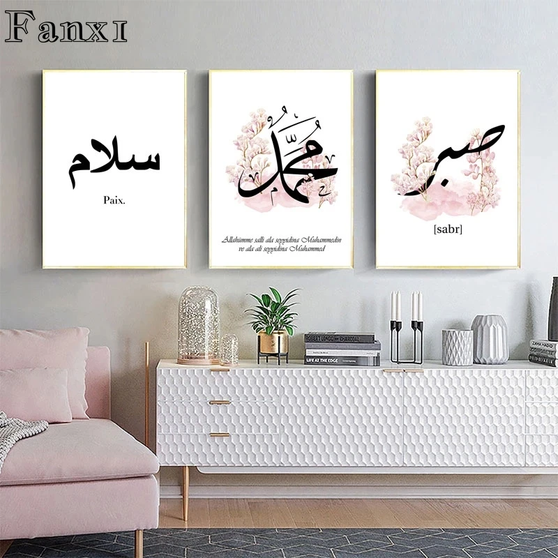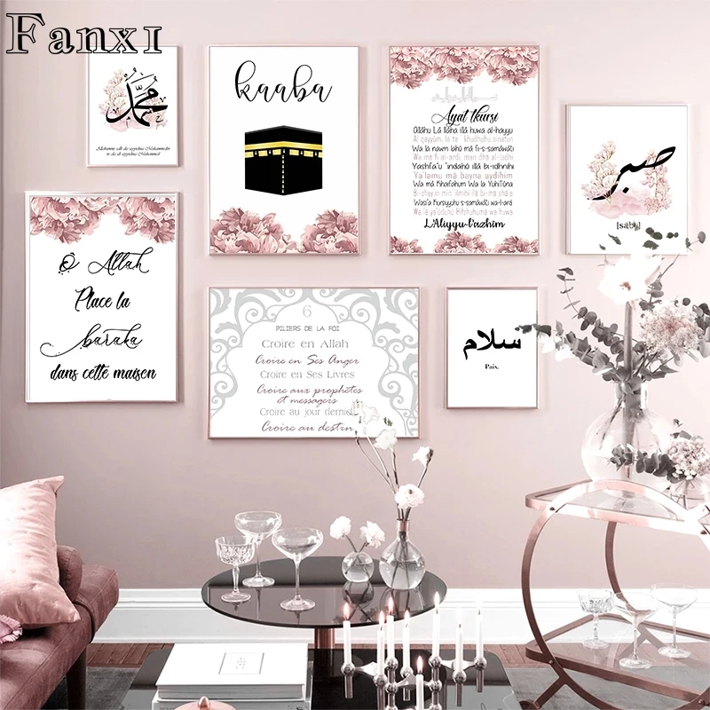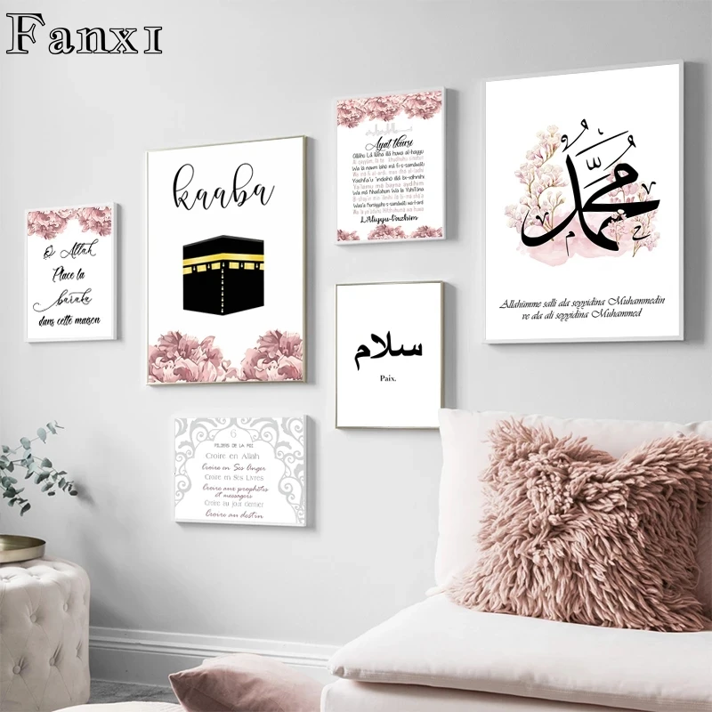 Показ художественной росписи с цитатами, Коран Аллах, холст, живопись, Кааба, изображения для украшения
