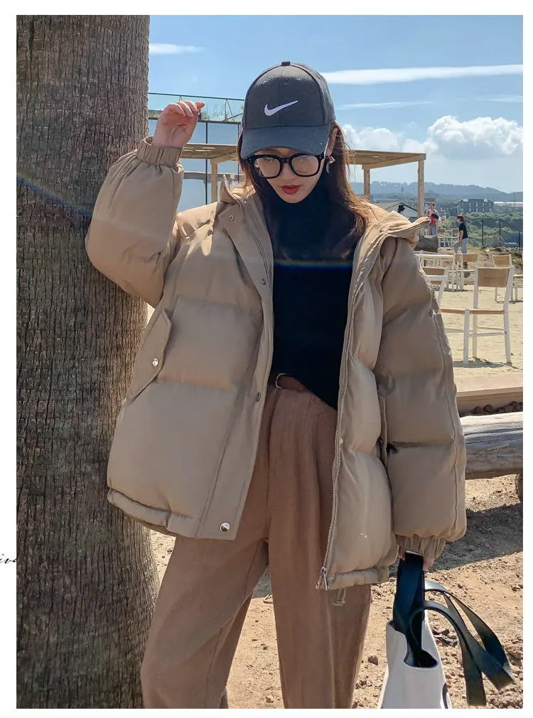 Новинка 2022, женская короткая куртка, зимние толстые пальто с капюшоном и хлопковой подкладкой, женские свободные парки в Корейском стиле, женская модель