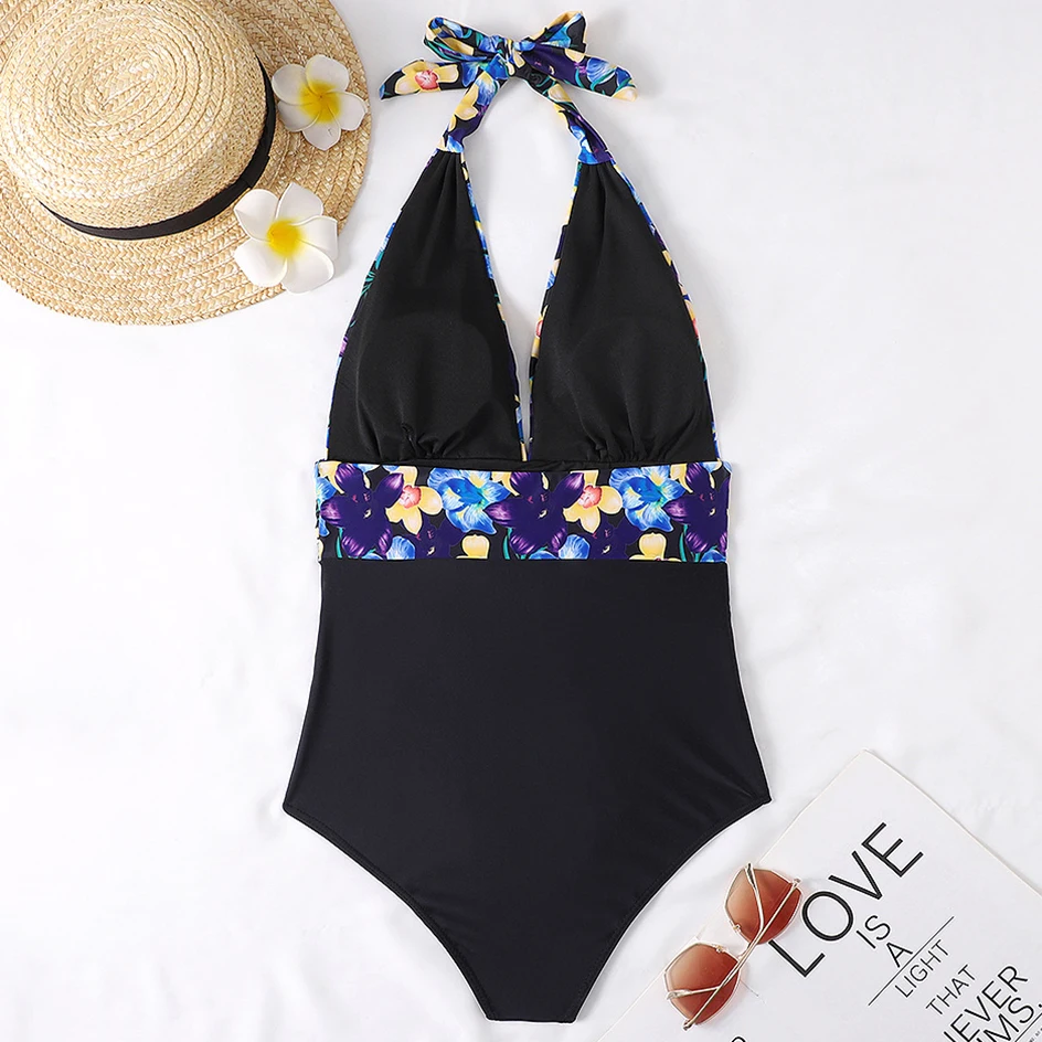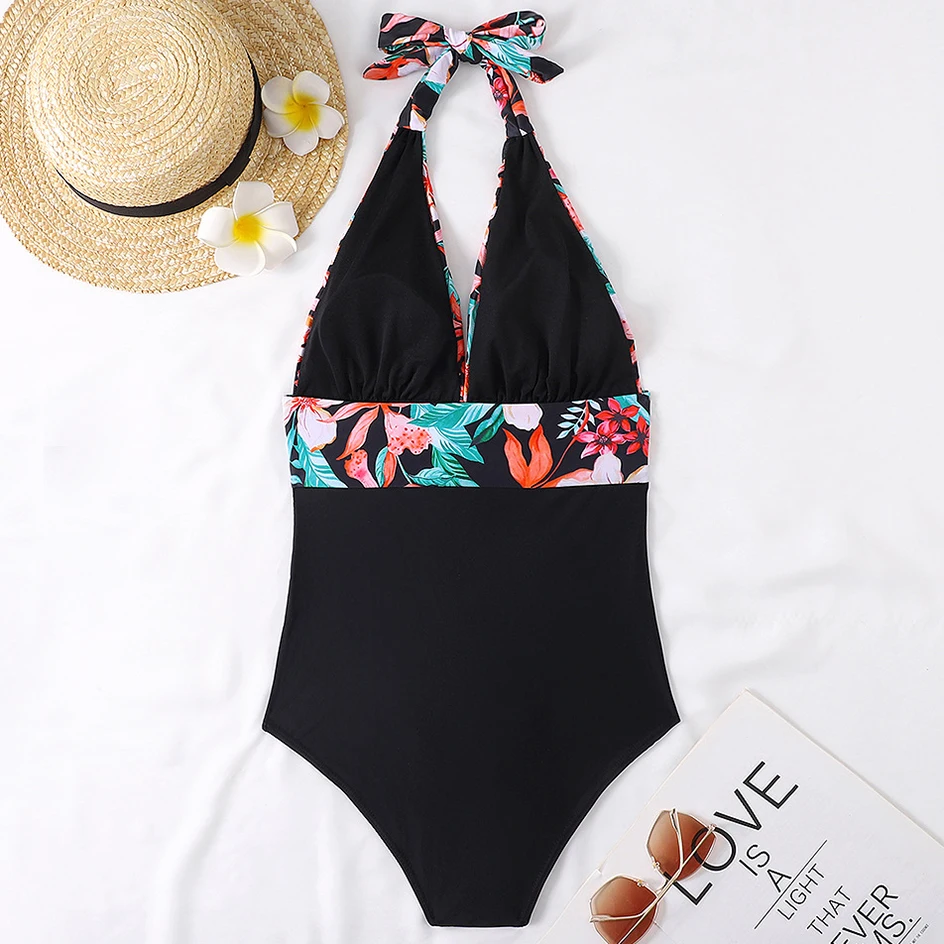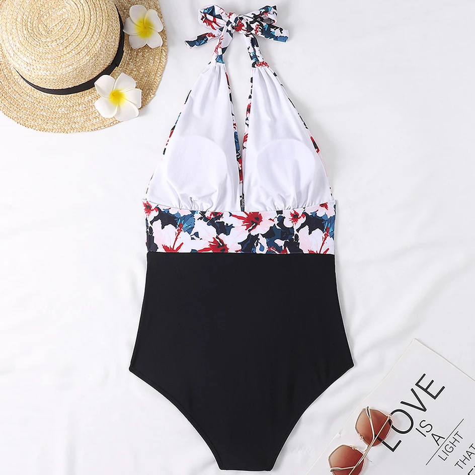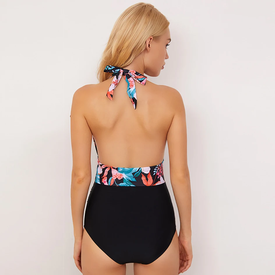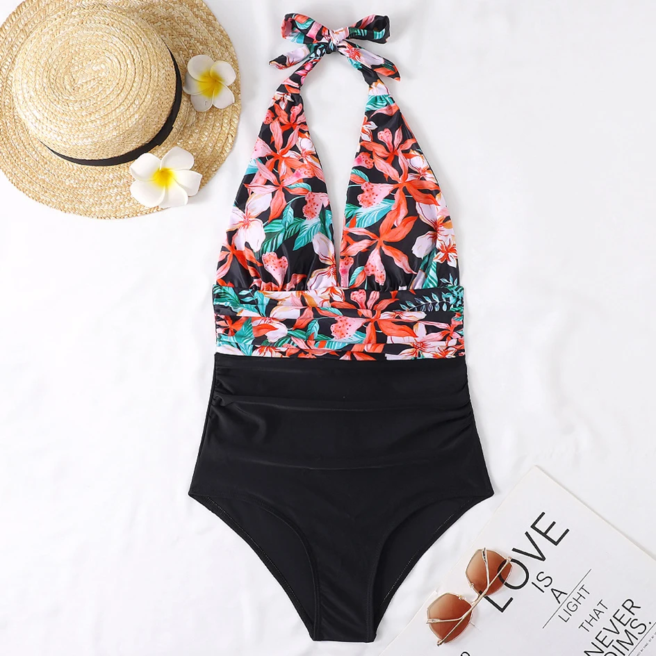 Роскошное бикини, купальный костюм с цветочным рисунком, цельный купальный костюм, Пляжное бикини на бретельках, спортивный облегающий купальник