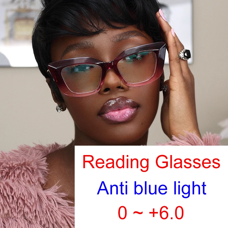 Роскошные брендовые градиентные фиолетовые очки для чтения кошачий глаз женские прозрачные компьютерные очки в толстой оправе с синими блоками для дальнозоркости + 1,0 + 2