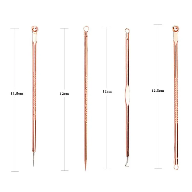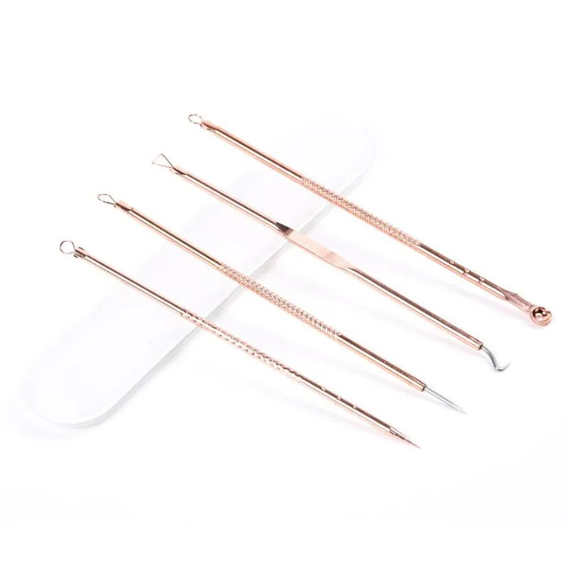 Инструмент для удаления черных точек, акне, 4 шт.компл., иглы для очистки, розовые, золотые, серебряные