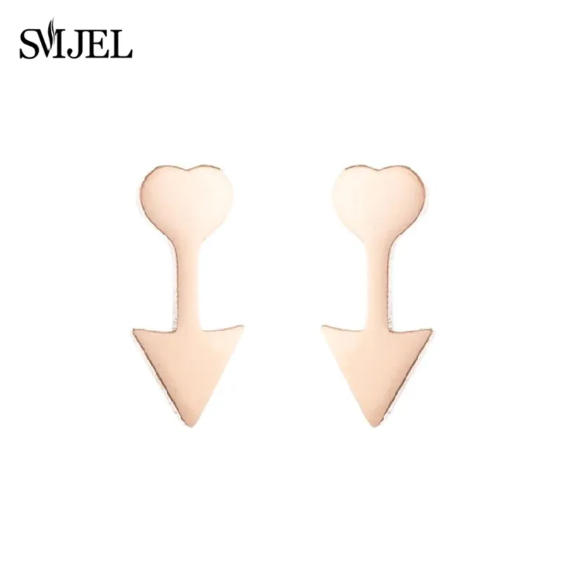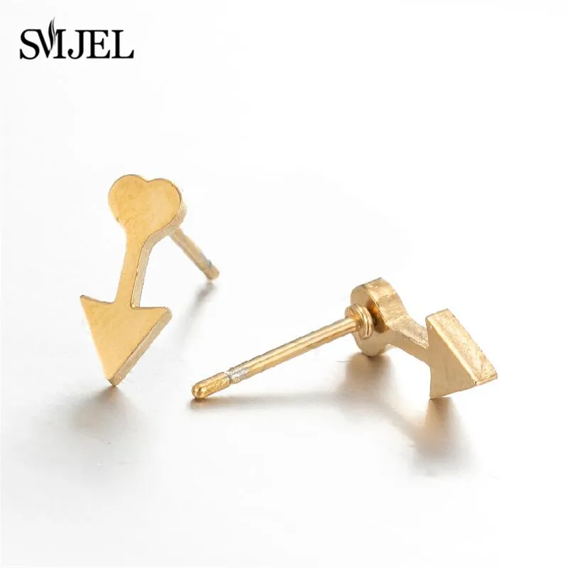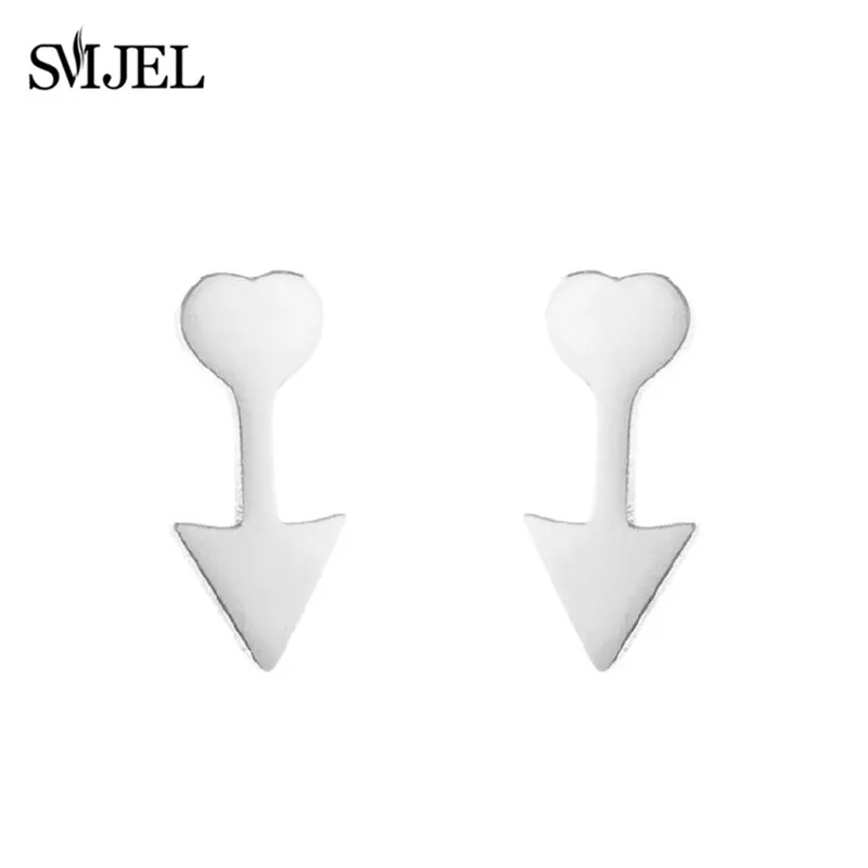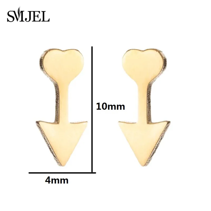 Женские маленькие серьги-гвоздики из нержавеющей стали, черные серьги-гвоздики в форме сердца, стрелы, подарок для девушки, 2021