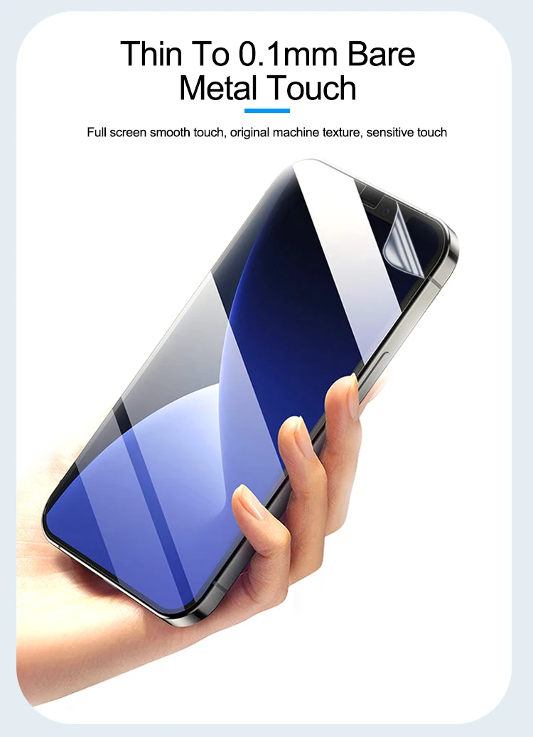 Изогнутый полноэкранный крой0,1 мм ультра-тонкий технологии, ультра-тонкий и гибкийКруглая и изогнутая крышка к краю, без деформации, без пыли и защиты углов24 часа автоматический ремонт24 часа, автоматический ремонт, нано отскок, не бойтесь ежедневных повреждений