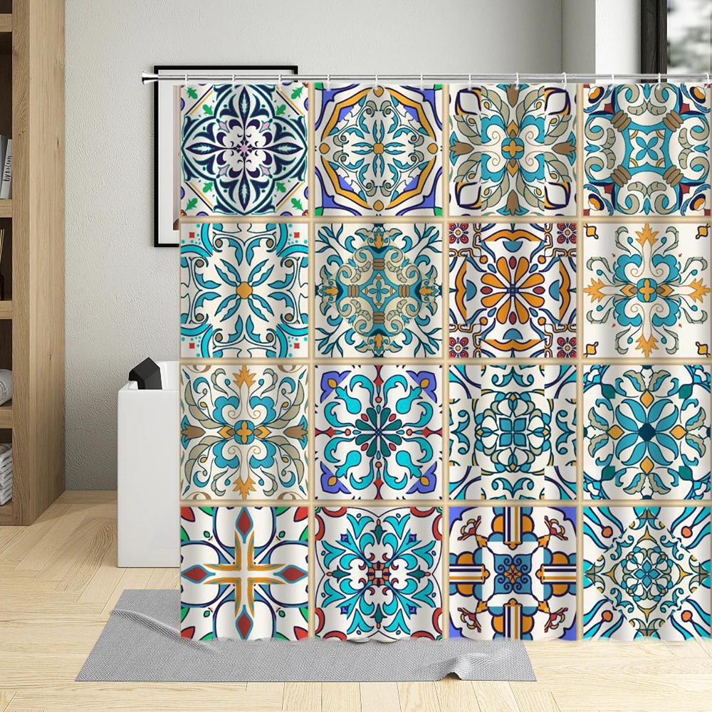 Занавеска для душа в марокканском стиле, водонепроницаемая, с крючками