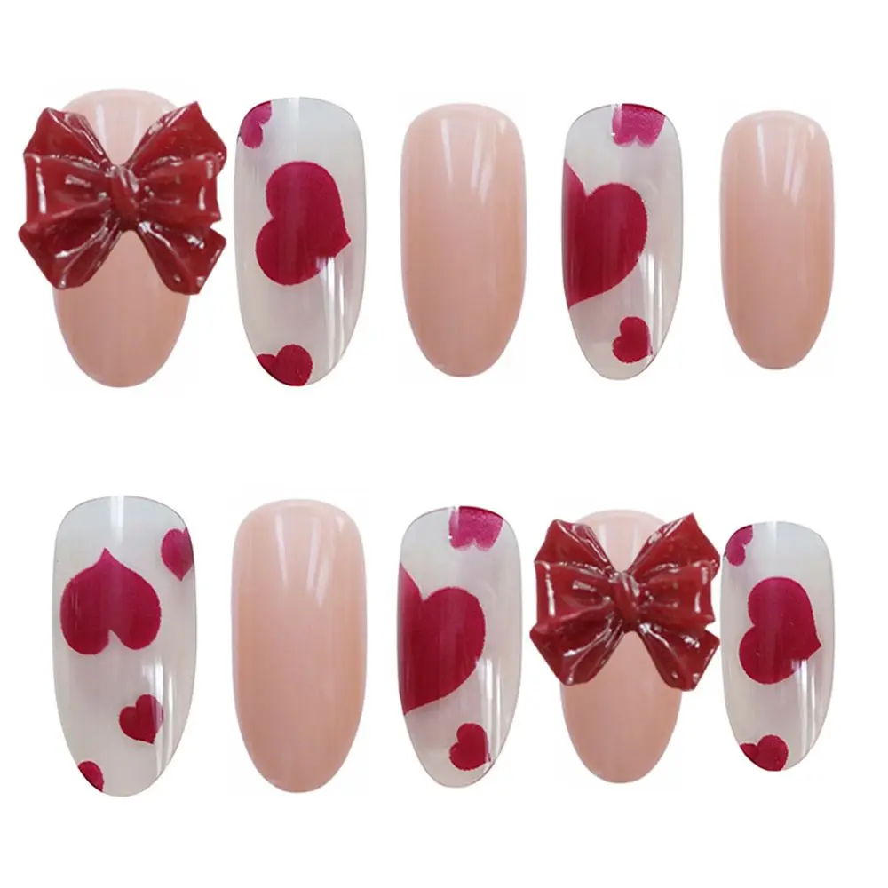 Носимые любовь пятнистые блестки лук миндаль балерина накладные ногти искусственные накладные ногти полное покрытие квадратная голова Типсы для маникюра