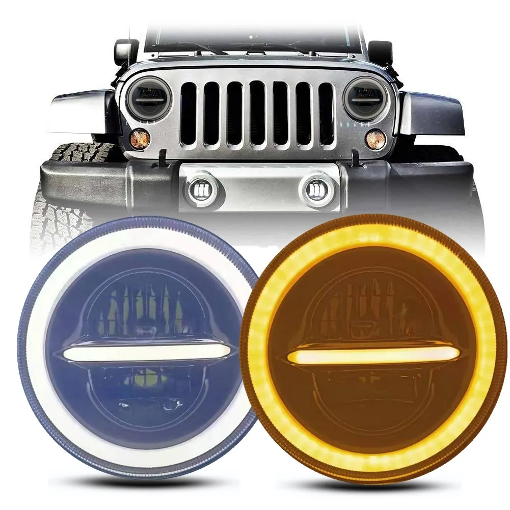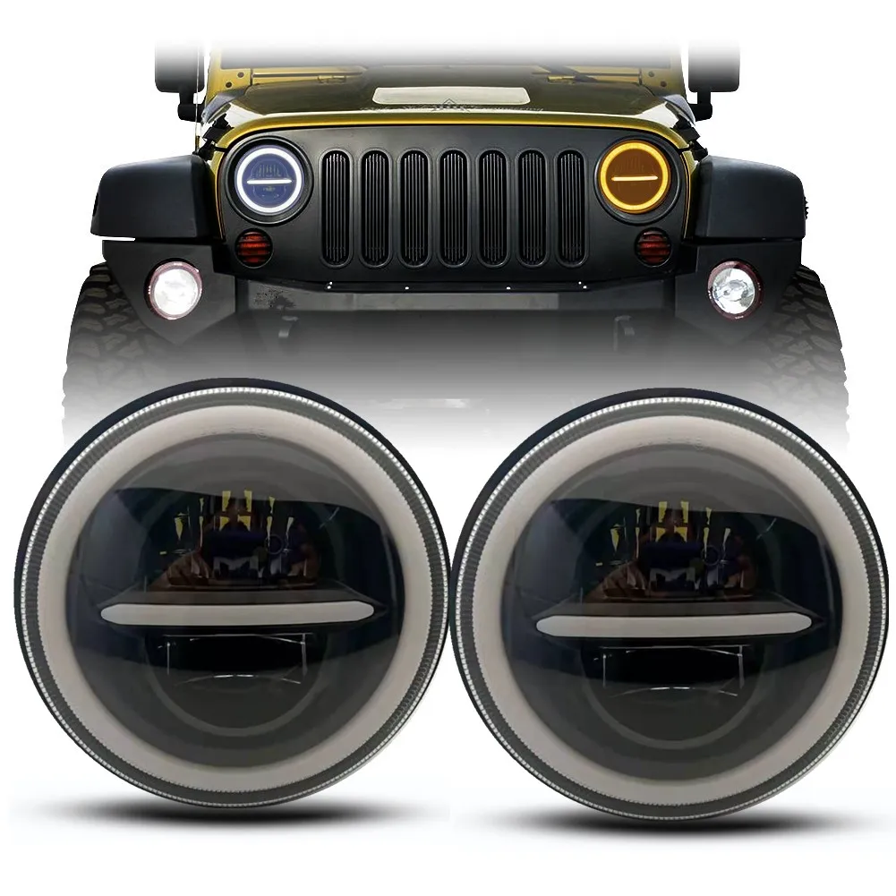 Автомобильные аксессуары, светодиодная фара 80 Вт 7 дюймов для Jeep Wrangler TJ JK с галогенными ангельскими глазами для Chevy C10 C20 C30