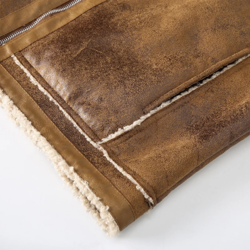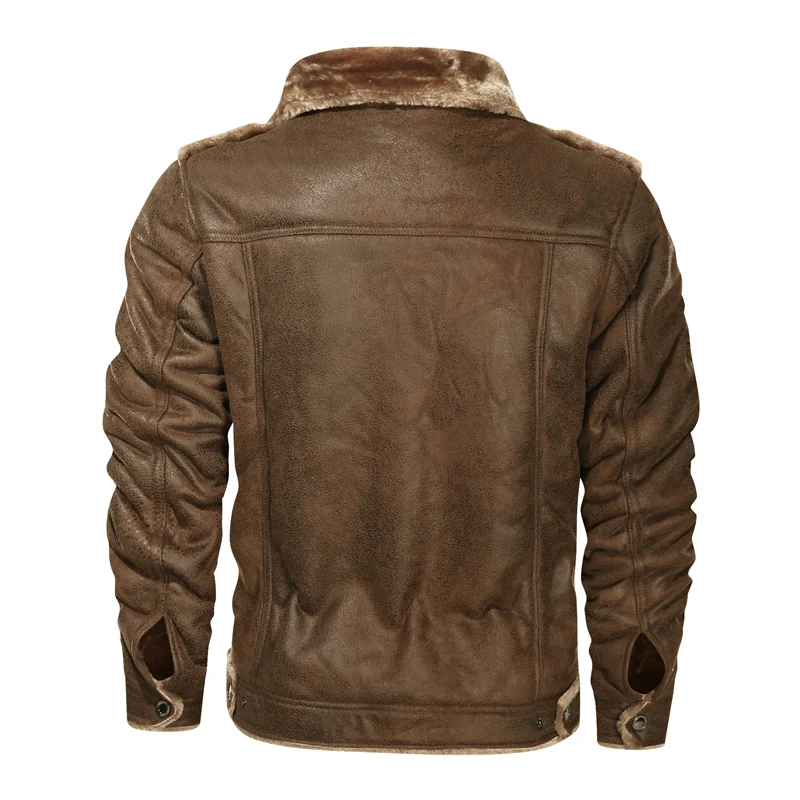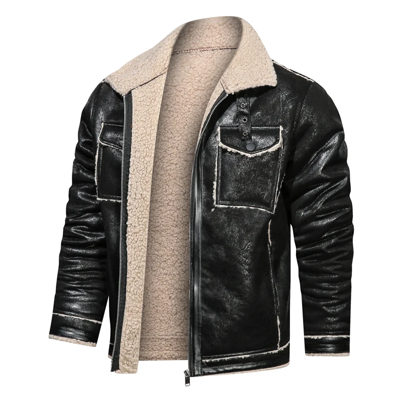 Мужская зимняя куртка из искусственной кожи, с флисовой подкладкой и карманами