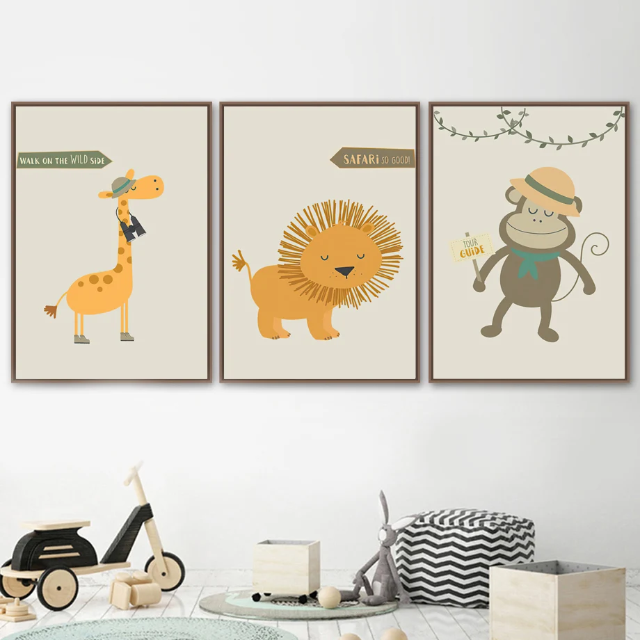 Мультяшный детский настенный Рисунок Лев, жираф, слон, тигр, Зебра,...
