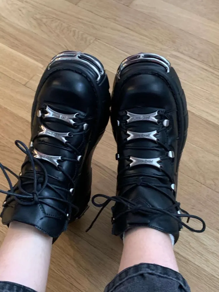 Женские кроссовки в стиле панк на платформе, модная повседневная обувь в стиле рок, женские мотоциклетные ботинки с металлическим украшением, модель st504, 2021