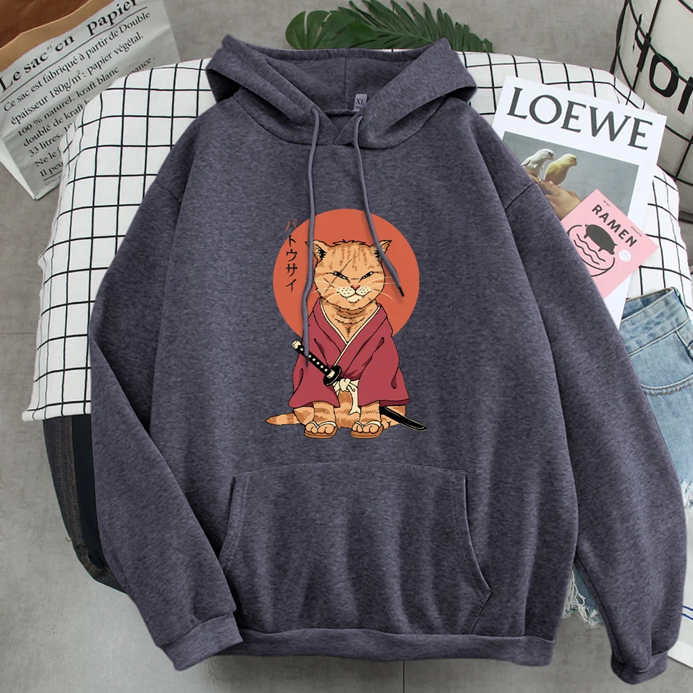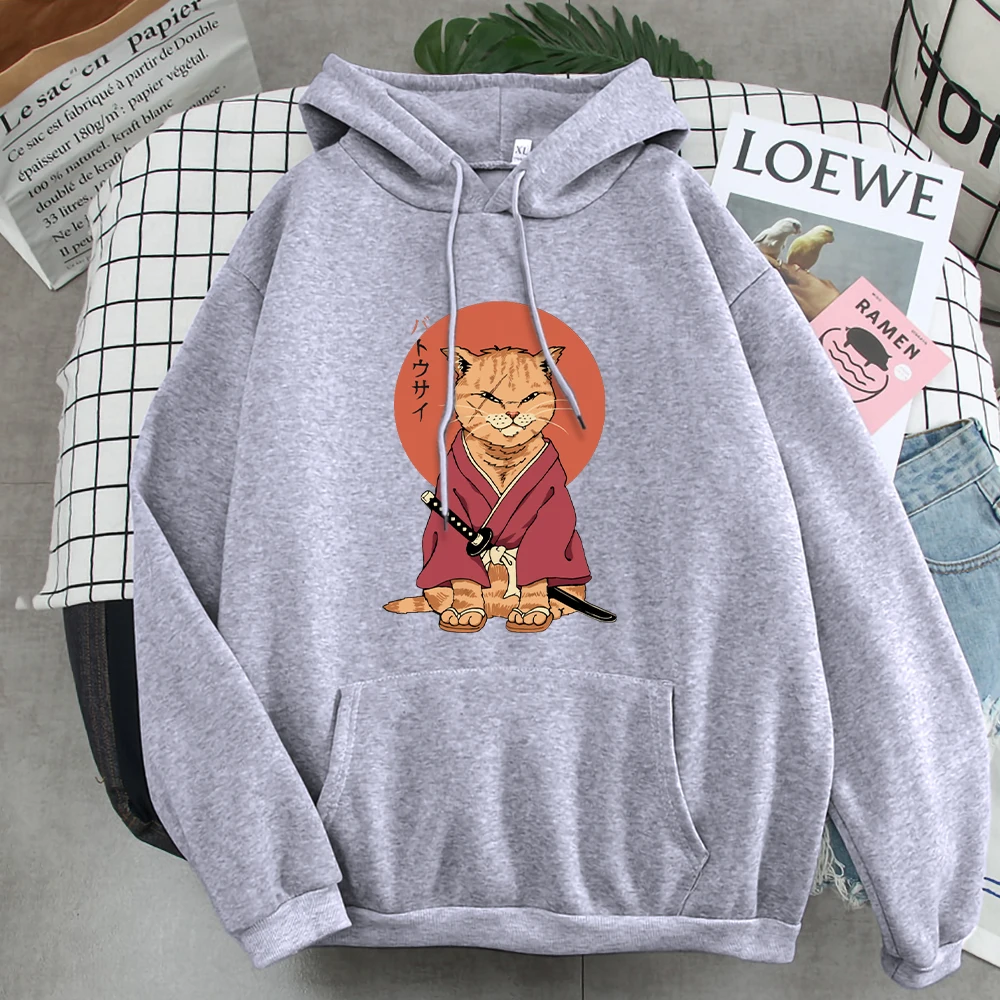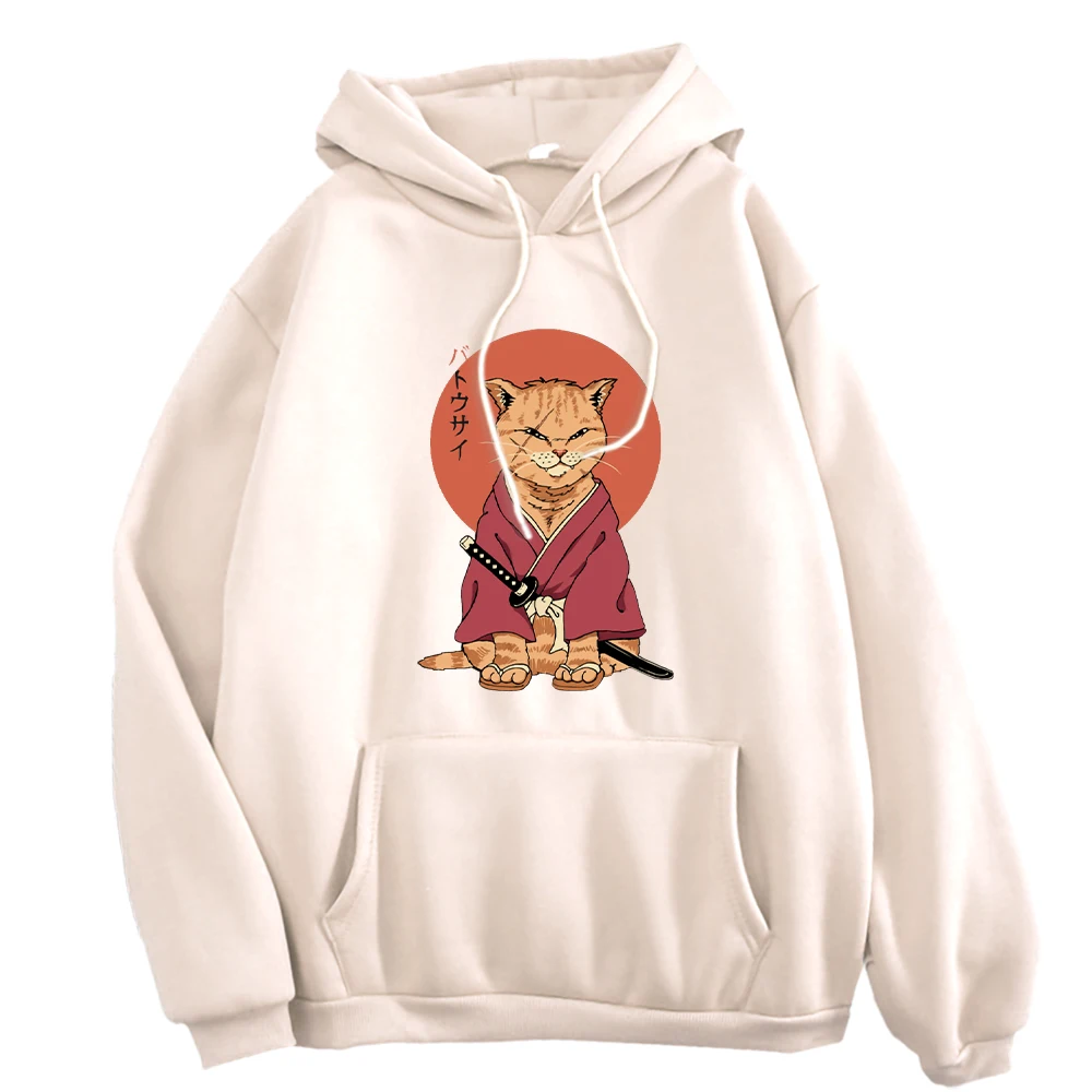 Sweatshirts Japanese Ninja Cat Print Hoody For ManHarajuku Streetwear Men Hoodie