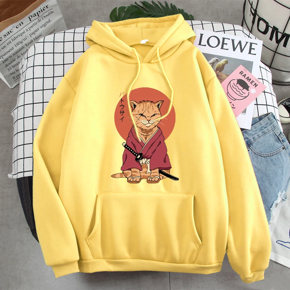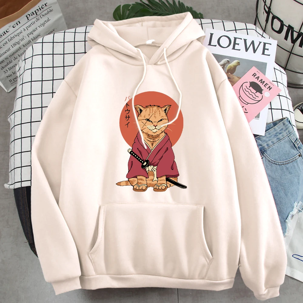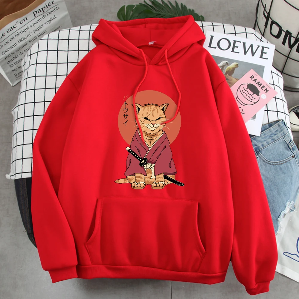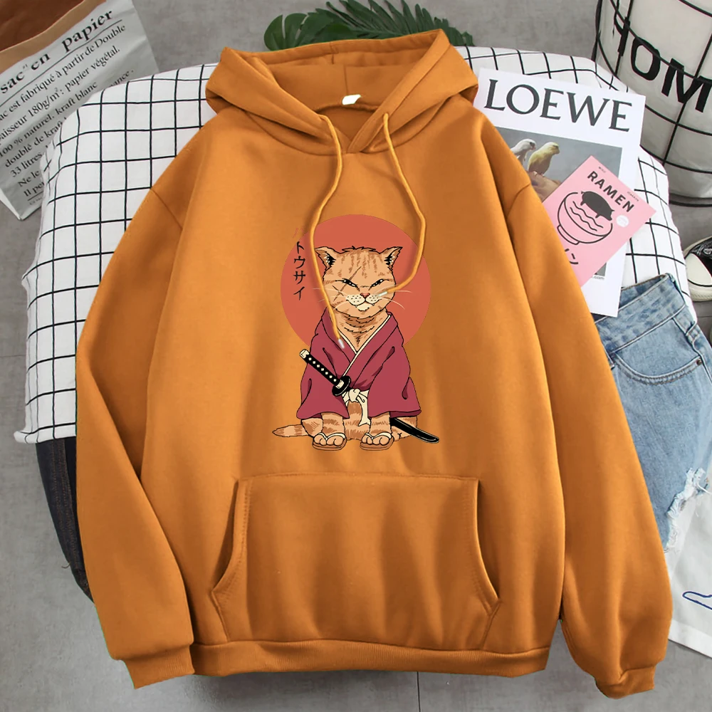 Sweatshirts Japanese Ninja Cat Print Hoody For ManHarajuku Streetwear Men Hoodie