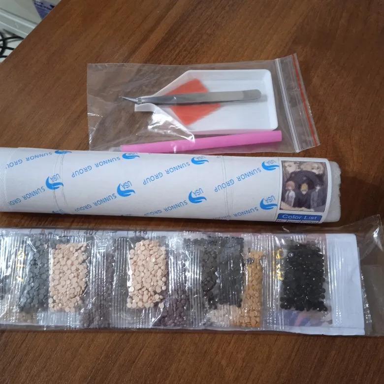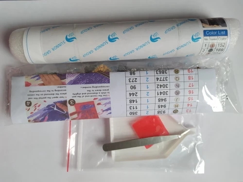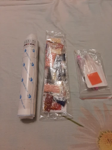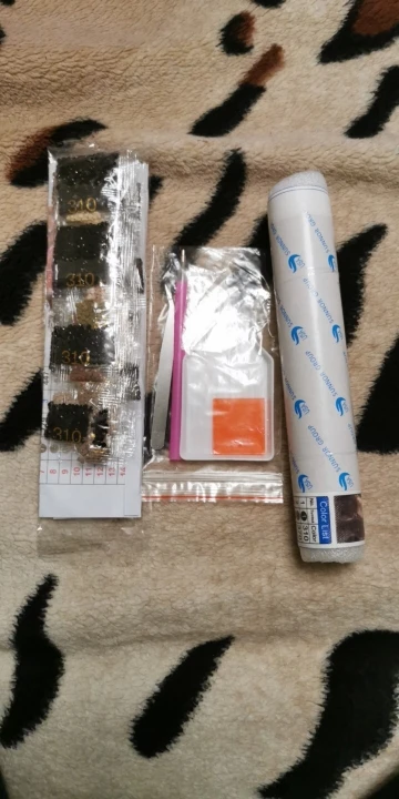 Доставка во мос.обл.с момента оплаты 12дней. Липкий слой хороший, стразики сверкают, в комплекте пинцет, ёмкость для страз,с носиком ,удобно пересыпать стразы, липкий квадратик и ручка.Холст намотан на валик. Продавец честный, спасибо.⭐⭐⭐⭐⭐
