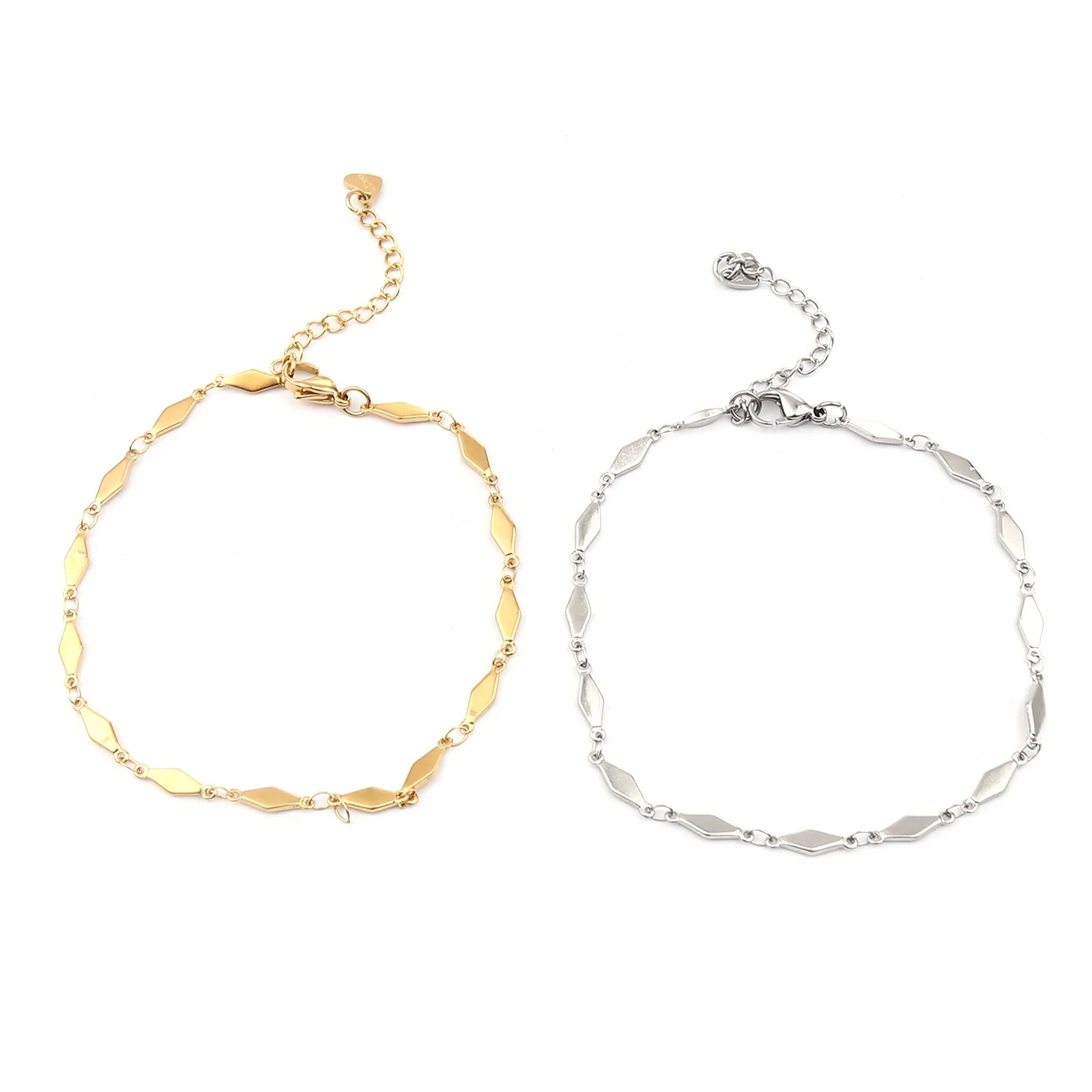 Модный браслет на ногу серебряного цвета из нержавеющей стали с ромбом, летняя пляжная золотая цепочка на ногу для женщин и девушек, ювелирные изделия для пляжной вечевечерние