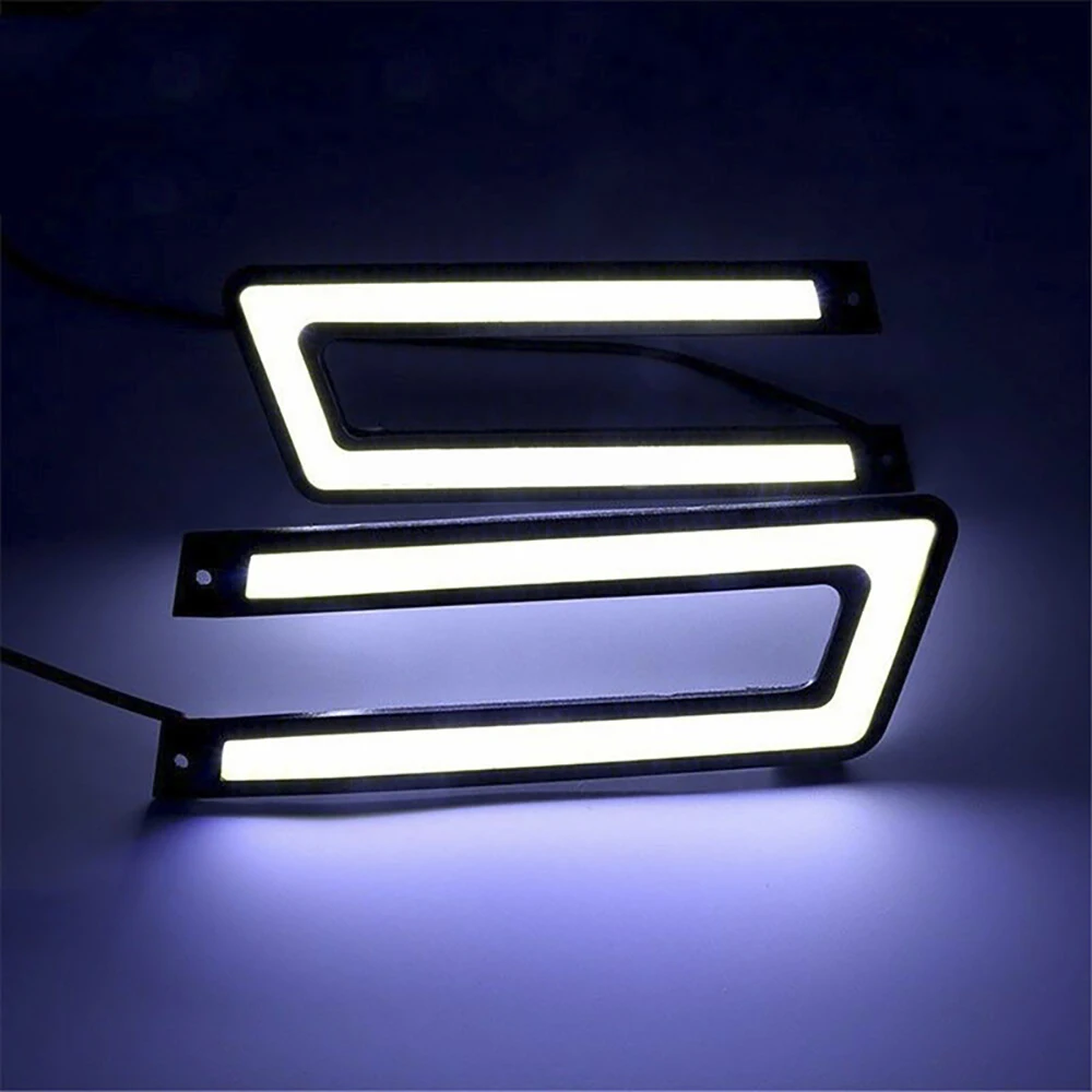 Универсальные белые светодиодные дневные ходовые огни COB DRL, передняя противотуманная фара 12 В постоянного тока, автомобильные фонари U-образной формы, 2 шт. для автодомов, фургонов