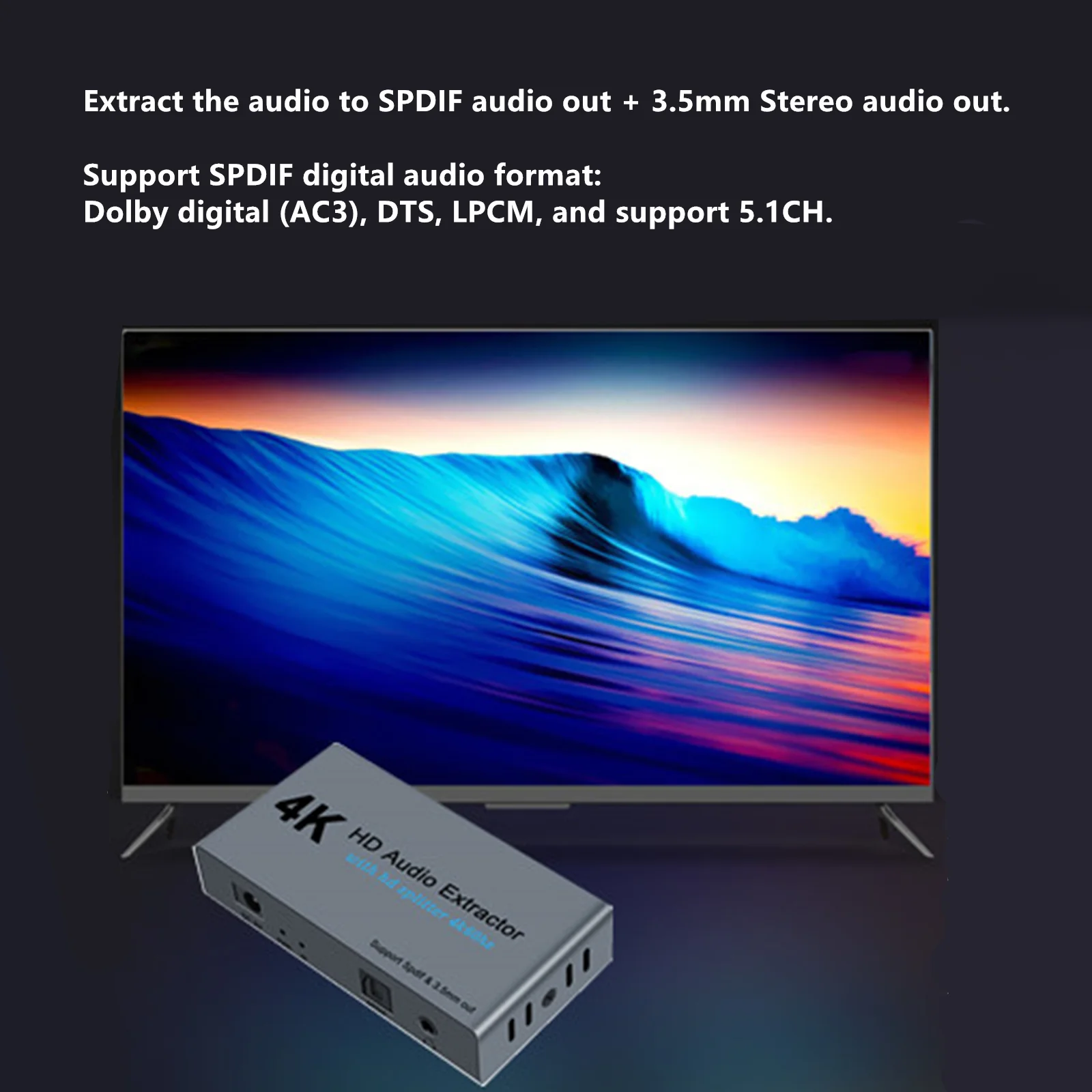 HDMI аудио экстрактор сплиттер 1X2 4K 60 Гц HDMI в оптический Spdif Toslink с HDMI и 3,5 мм стерео аудио конвертер адаптер