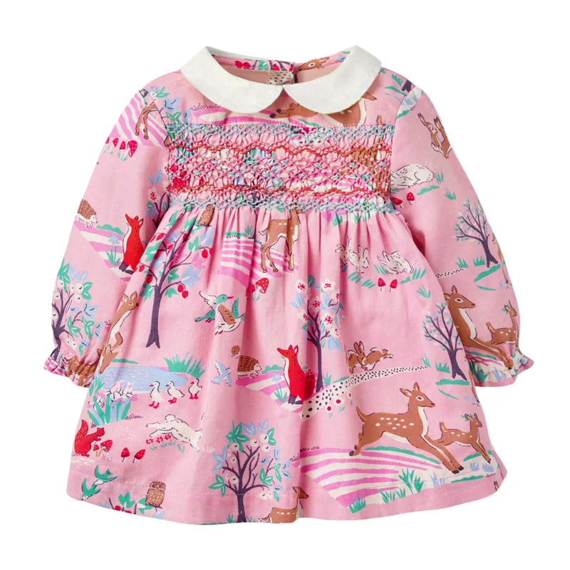Little maven/осенне-зимняя юбка для малышей одежда с длинными рукавами для девочек с рисунком розового оленя и лисы Повседневные детские платья с отворотами на возраст от 2 до 7 лет