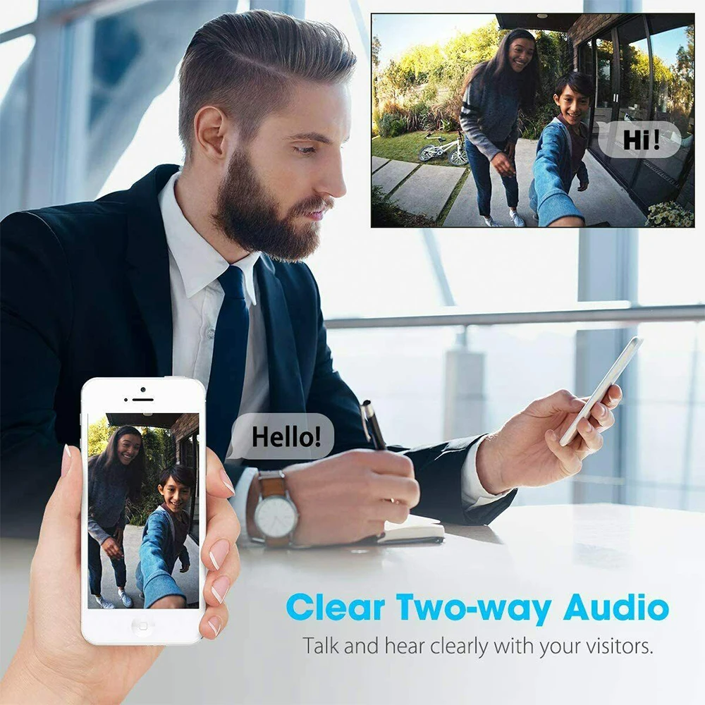 Дверной видеодомофон поддерживает двухстороннее аудио, когда кто-то нажимает дверной звонок или PIR обнаруживает сигнализацию, ваше мобильное приложение получит сигнал тревоги видео звонок напрямую, вы можете просто ответить на звонок, чтобы увидеть видео звонок прямо из вашего мобильного приложения и поговорить в режиме реального времени.Это HD разрешение с 720p принятым чипсетом cmos. Вы можете наслаждаться отличным изображением видео full hd и картинкой из этого дверного звонка для домашней безопасности наблюдения. Беспроводная дверная камера дверного звонка для квартиры или заднего двора.Это не только беспроводной дверной звонок для вас, но и ip-камера безопасности для вашего дома. Многофункциональные функции, которые включают в себя беспроводное, двухстороннее аудио, датчик движения, поддерживает android и ios системы мобильных телефонов.С защитой от дождя дверной звонок может быть установлен на открытом воздухе, и вам не нужно беспокоиться о том, что он пропитан дождем.Характеристики:Название товара: беспроводной дверной ЗвонокSNR: > 39 дБНочное видение: автоматический ICR, 6 850 мм Сильные Инфракрасные огни, 10 метровРазрешение: 720PИнтерком: Двусторонняя голосовая вставка с подавлением эхаБеспроводная сеть: 802.11b/g/nПамять: поддерживает TF карту до 32 ГбИсточник питания: аккумулятор ed, 3 аккумулятора 18650Мощность: Стандартный ток 400uA, рабочий ток 200мАРабочая среда: Рабочая температура: -10-50 градусов; Рабочая влажность: < 95%Установка: установка двери или стеныМатериал: АБС-пластик + электронные компонентыЦвет: черный/черный + серебристый/серебристыйРазмеры: 7,5x3,3x14,4 смПримечание:-Возможны небольшие погрешности в размере при ручном измерении.-Отклонение цвета может отличаться из-за различных настроек монитора, пожалуйста, поймите.Упаковочный лист
