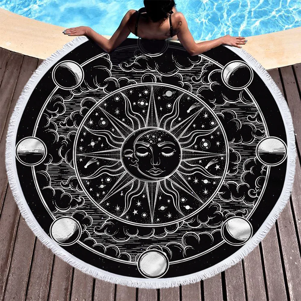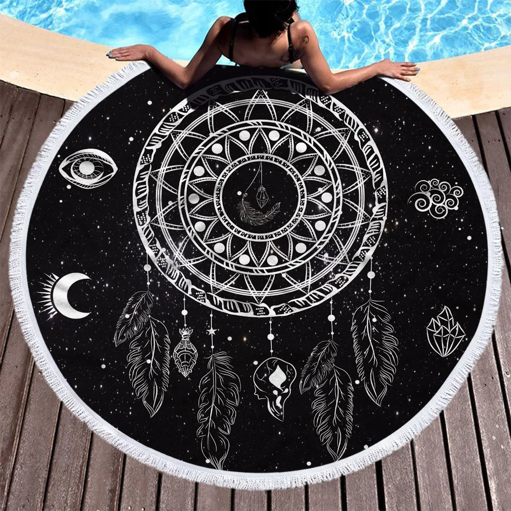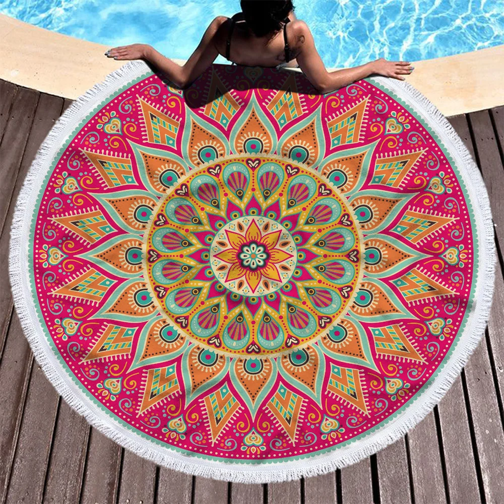 Круглое пляжное полотенце с изображением мандалы, большой пляжный коврик из микрофибры, для взрослых, для йоги, с кисточками, летнее одеяло в стиле хиппи