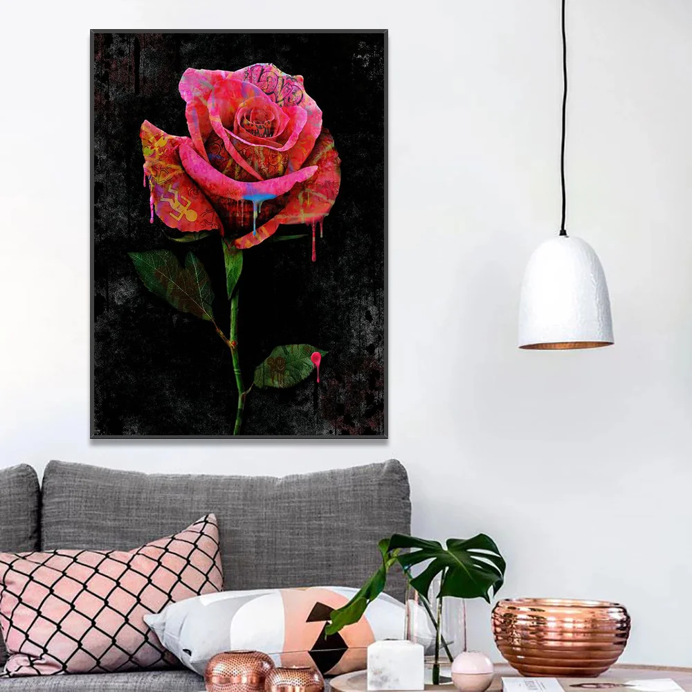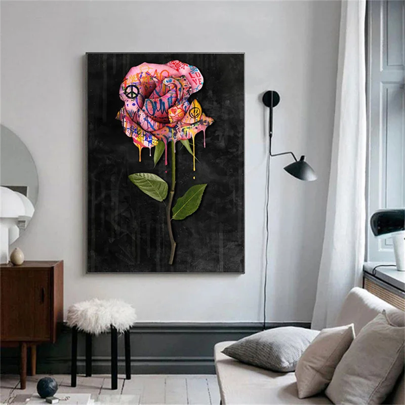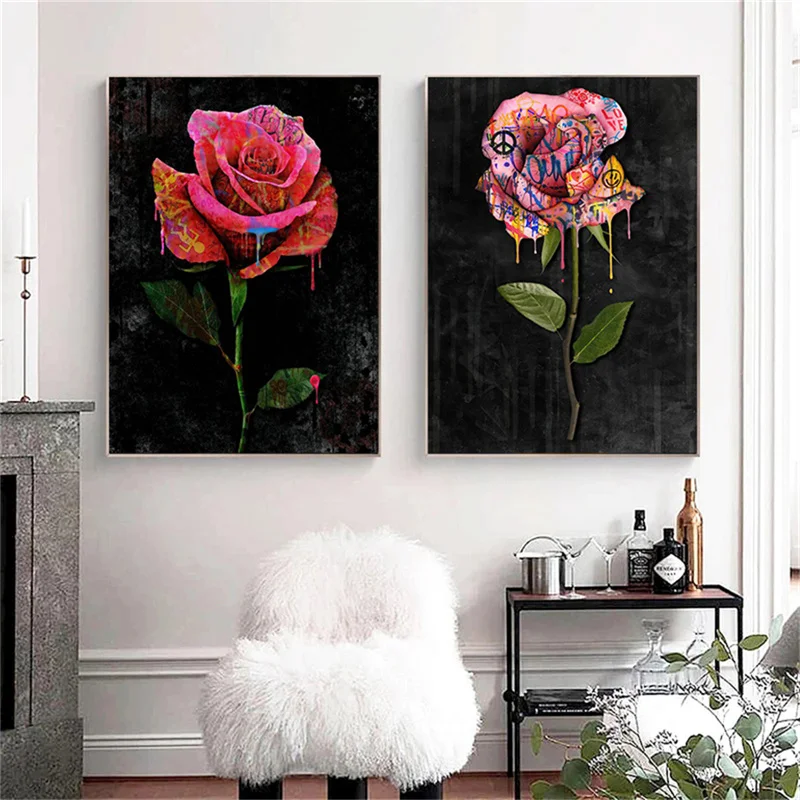 Картина на холсте с изображением граффити розы, современный постер с цветочным принтом для спальни, гостиной, домашний декор, уникальный подарок
