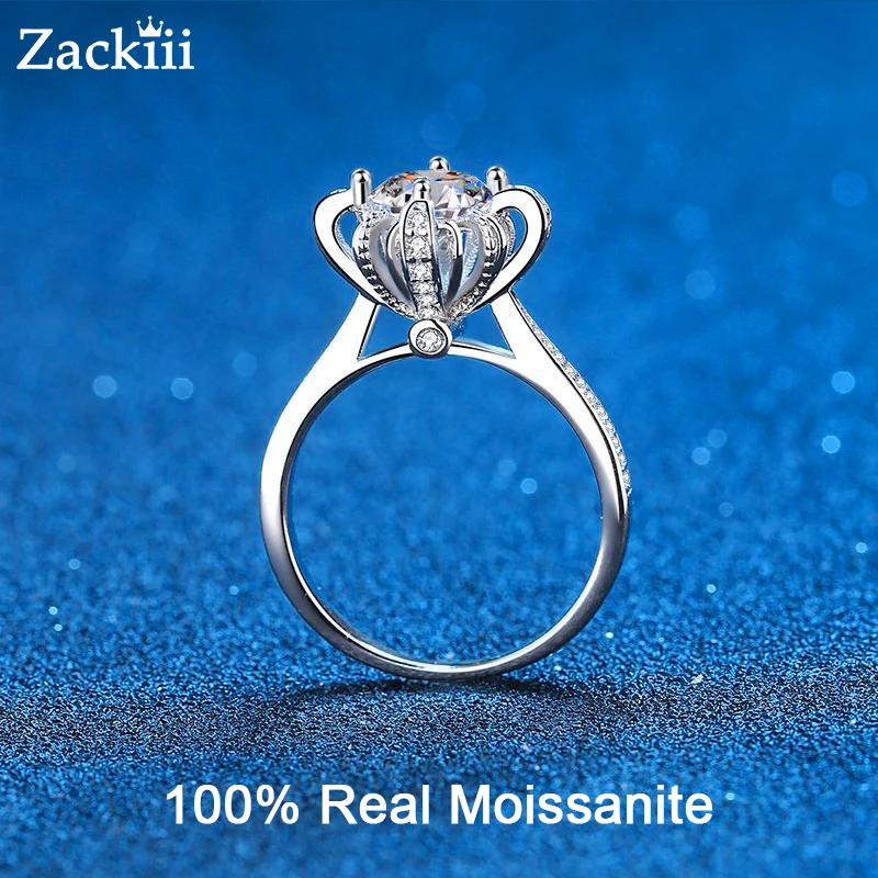 Обручальное кольцо с муассанитом и короной, 6,5 мм, 1 карат, с цвет...