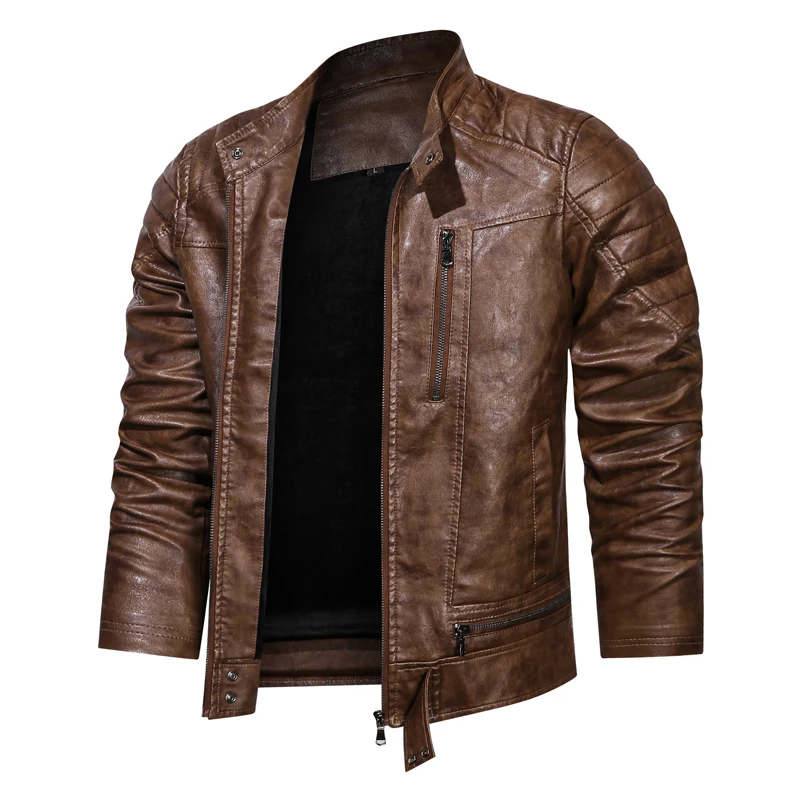 Мужская кожаная куртка, с воротником-стойкой, из искусственной кожи...