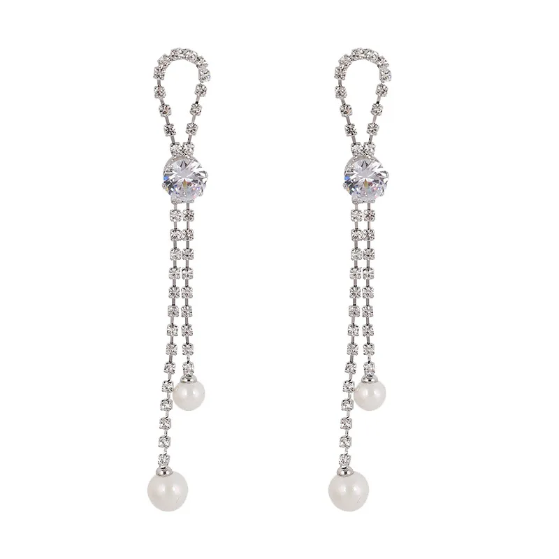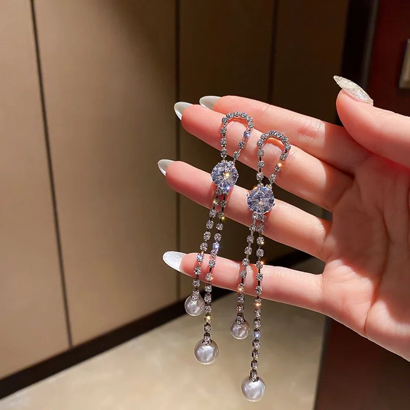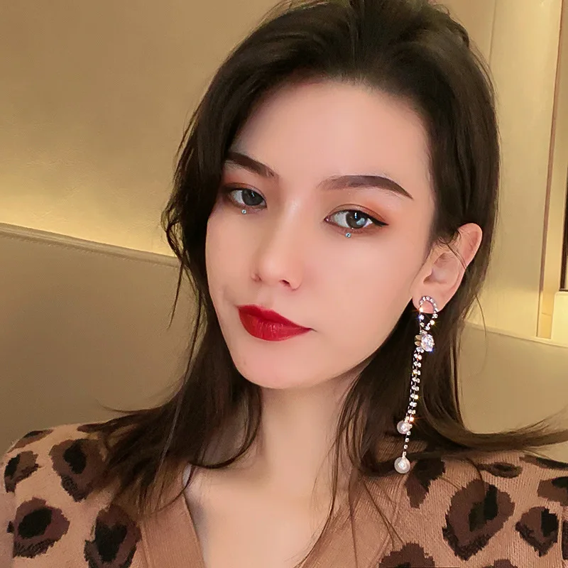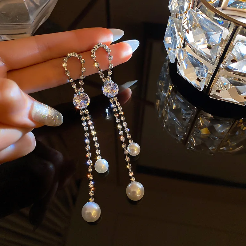 Винтажные модные роскошные длинные серьги с кристаллами для женщин, элегантные жемчужные Висячие серьги, свадебные и вечерние ювелирные изделия, подарки 2021