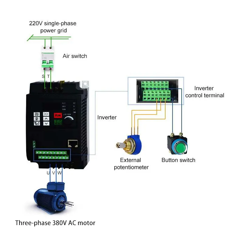 Однофазный 220 В вход три фазы 380V инвертор с одним выходом демо