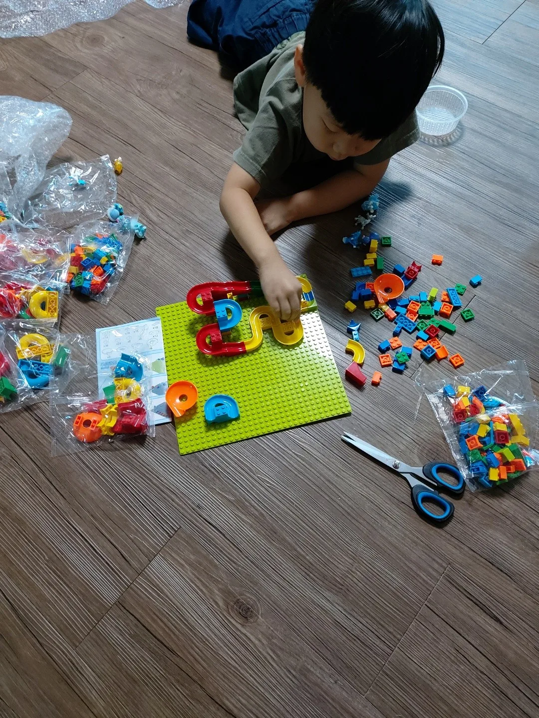 очень маленький конструктор, для двух лет прям совсем мелкие, и туго устанавливаются. ребенок будет получать не удовольствие а стресс от маленьких деталей. только мы взрослые собираем, ребенок только сидит смотрит и потом уже сам играет когда башня построена. и еще схема сбора конечно вообще не чёткая, полностью собрать удалось только со второго раза когда видишь уже наглядно. вот так вот. на самом деле думали что конструктор будет как Лего дупло, но оказалось не так.