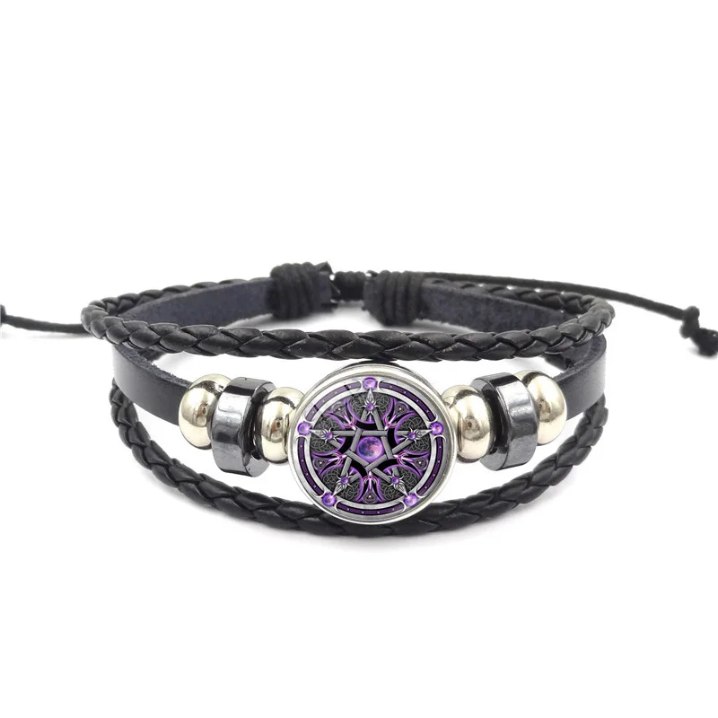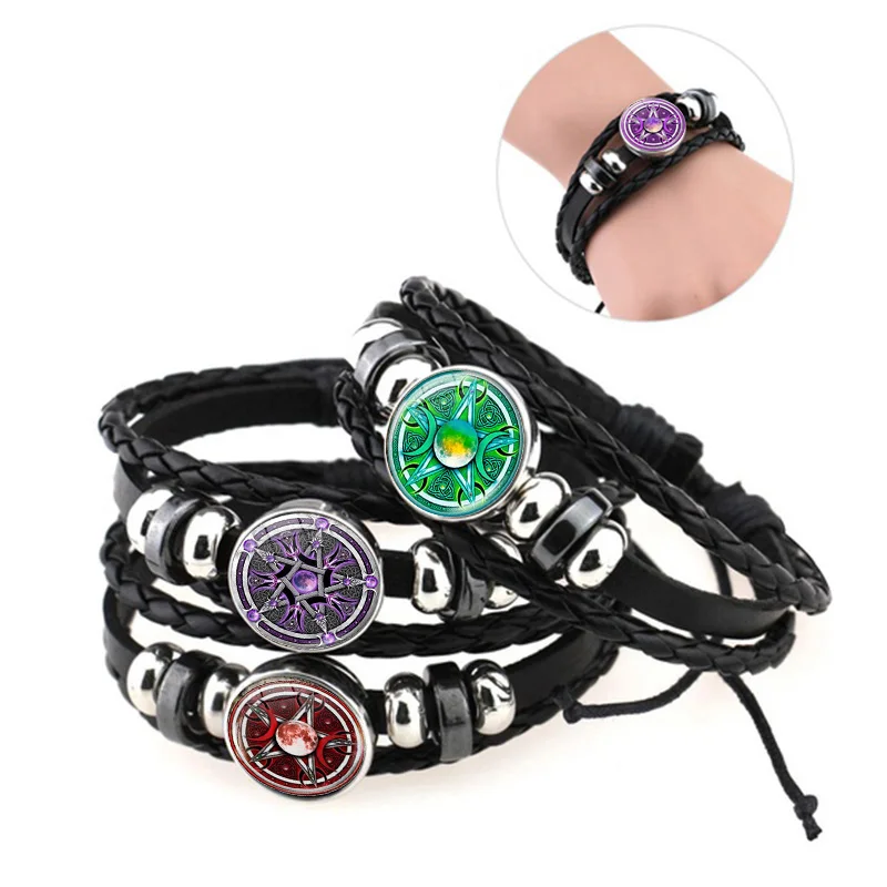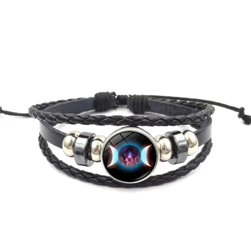 Винтажный многослойный Плетеный Кожаный Браслет, Мужская статуя тройной Луны, богини Викки, пентаграммы, браслет в стиле панк, ручная работа