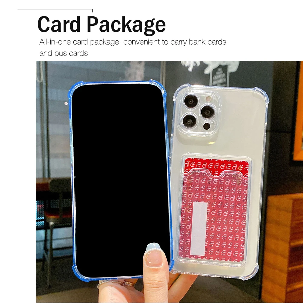 Суперударопрочный силиконовый чехол для iPhone 12, 11 Pro Max, X, XR, XS, 7, 8 Plus, SE, 2020 дюйма, мягкий прозрачный чехол с отделением для карт
