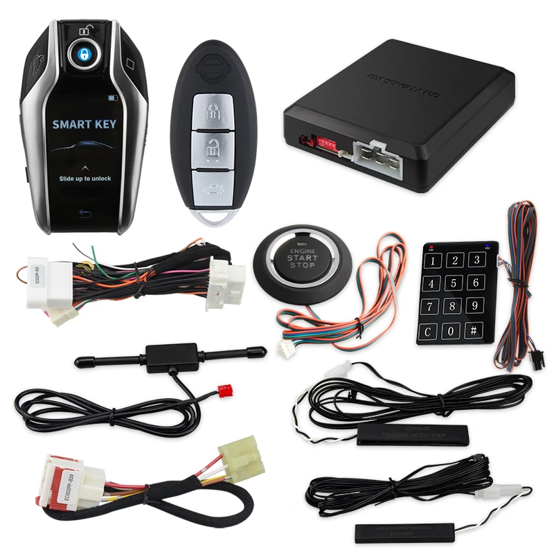 Это ec002pp-ni PKE сигнализация от EASYGUARD с пуском двигателя и функцией удаленного запуска двигателя.