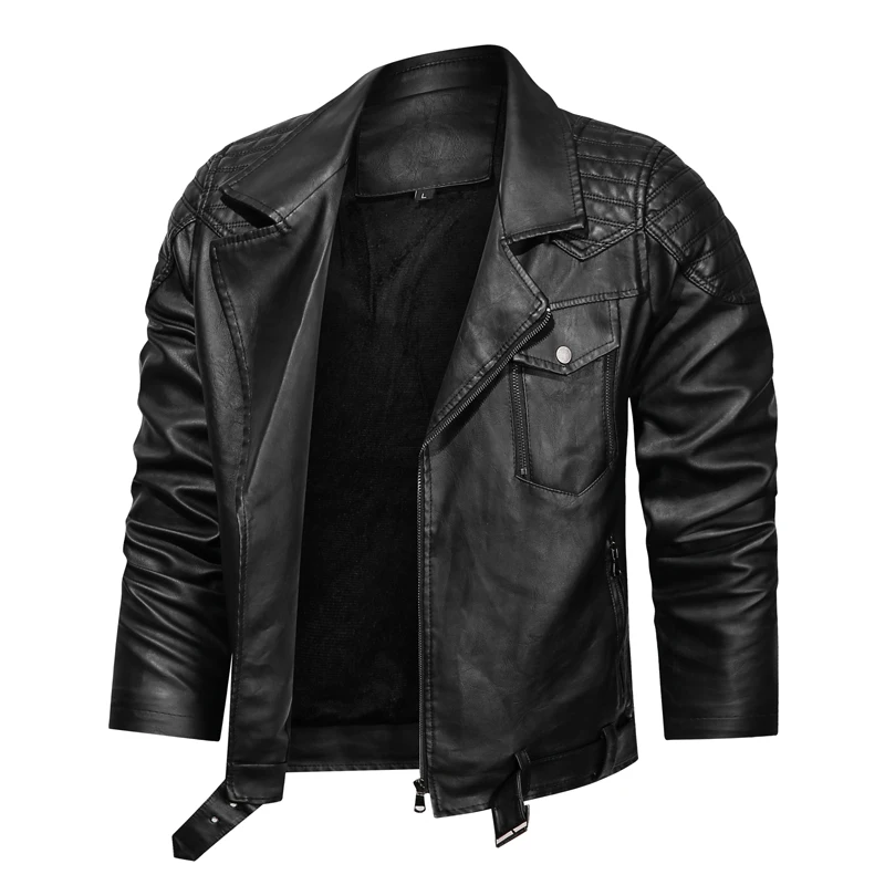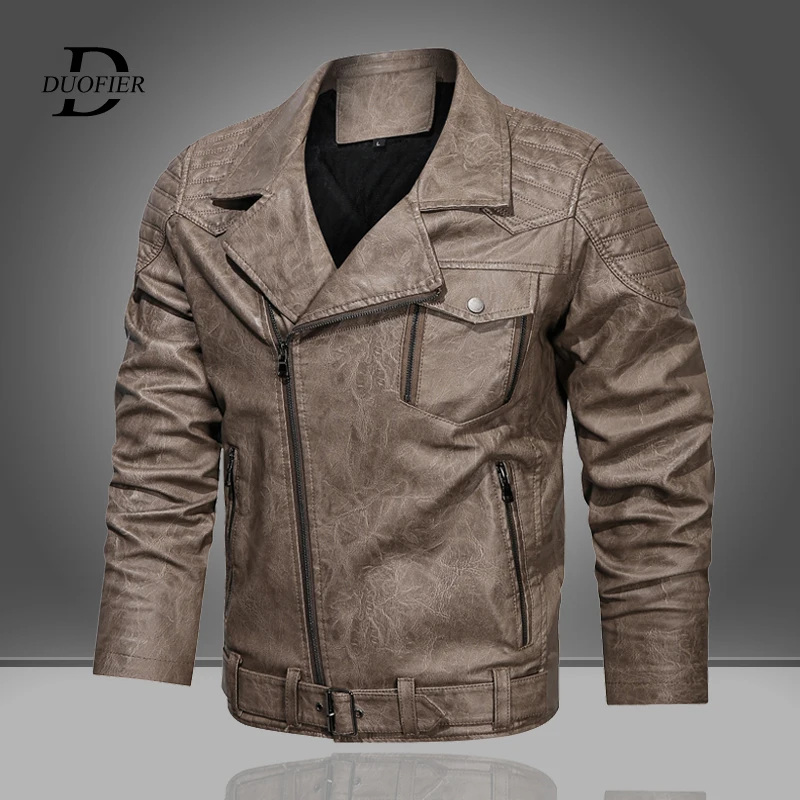 Мужская повседневная Толстая мотоциклетная куртка, Мужская кожаная ...