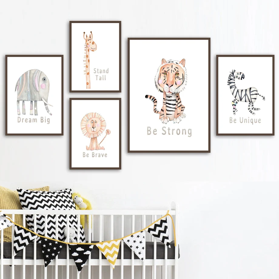 Мультяшный детский настенный Рисунок Лев, жираф, слон, тигр, Зебра,...