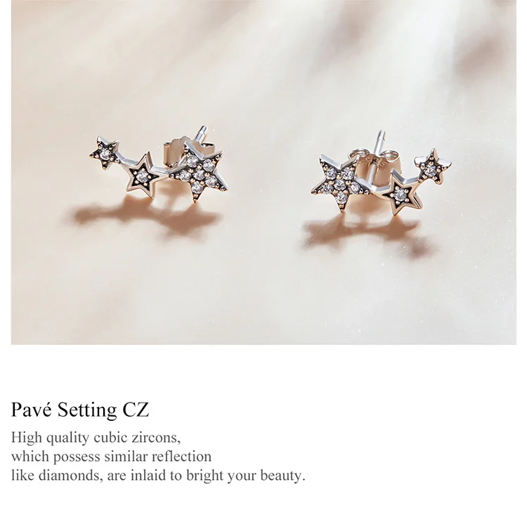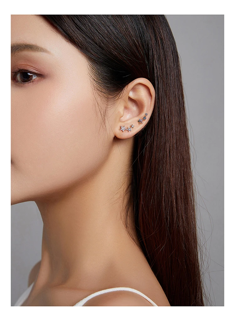 WOSTU 925 стерлингового серебра асимметричные серьги-гвоздики с тре...