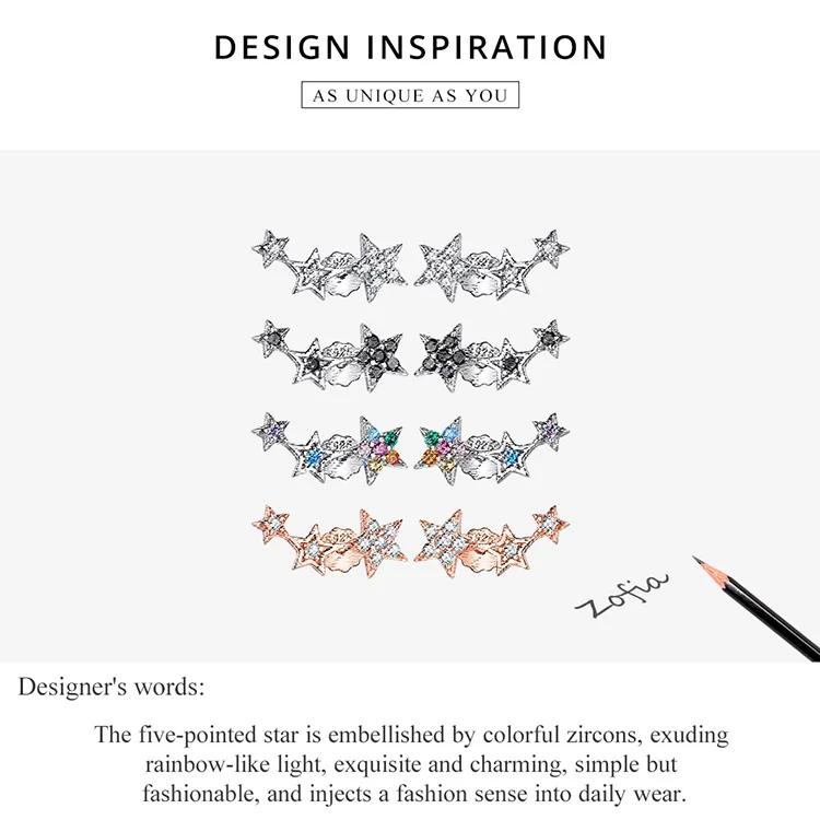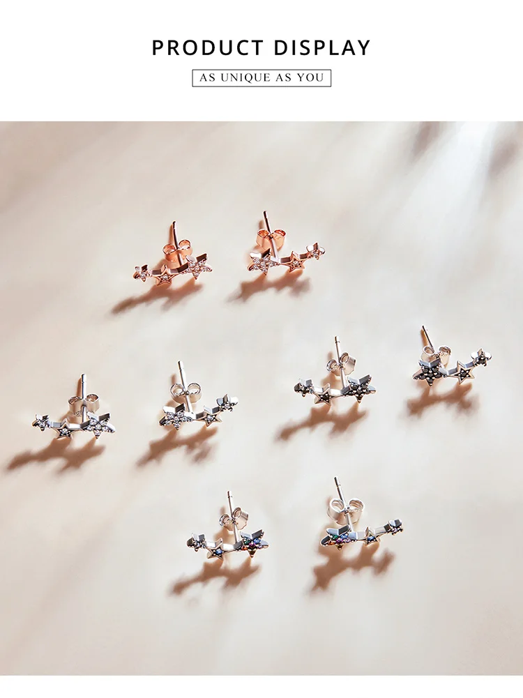 Wostu серебряные серьги из стерлингового серебра 925 пробы, цветные пятиконечные серьги-гвоздики со звездой для женщин, ювелирные изделия для помолвки, подарок