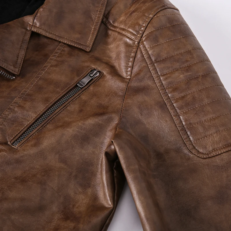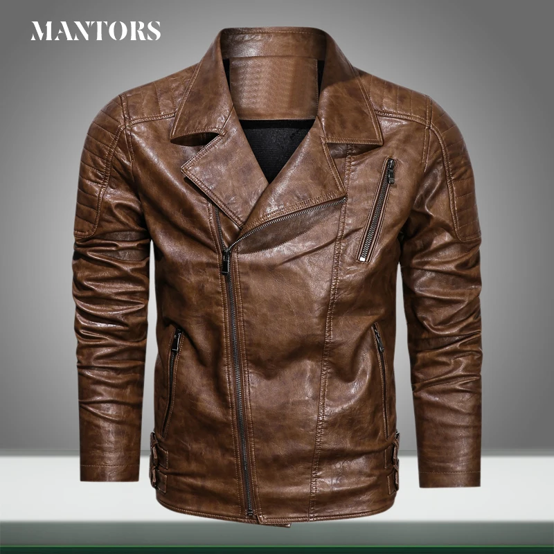 Куртка мужская из искусственной кожи, с отложным воротником, в стил...