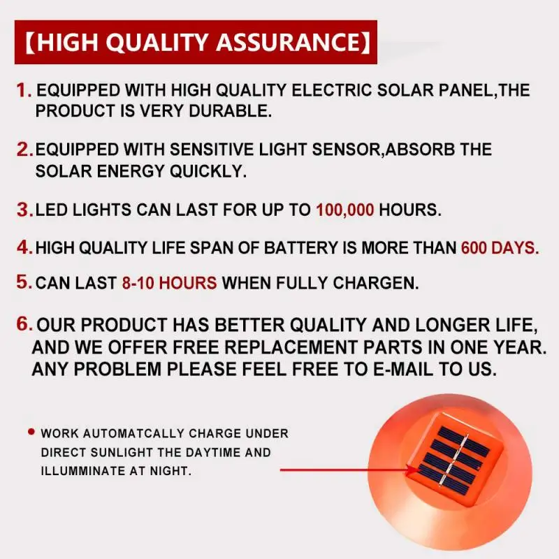 Последняя Улучшенная солнечная панель с высоким коэффициентом конверсии и длительным временем использования. Экономия энергии, среднее время работы может достигать 8 часов, если он полностью заряжен.