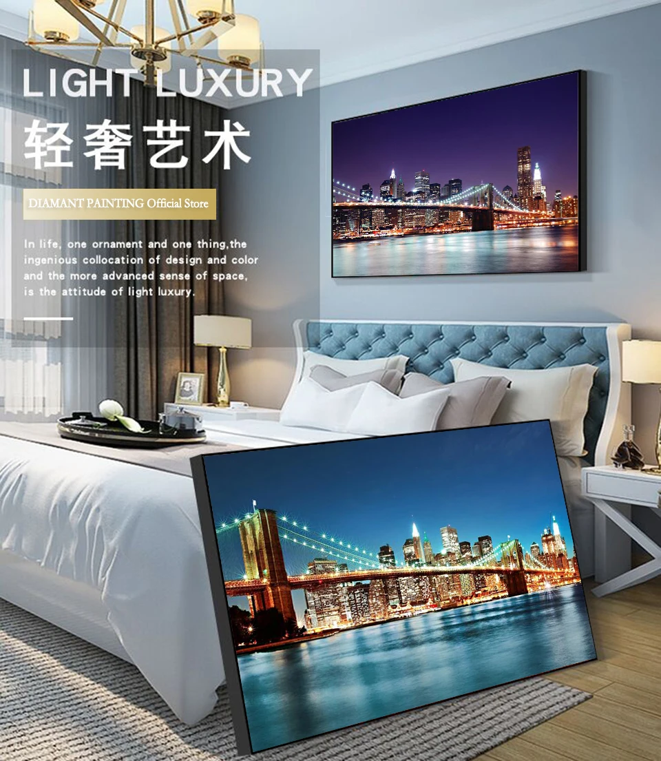 5D алмазная живопись, Городской Ночной пейзаж, полноразмерная Алмазная вышивка, строительство, пейзаж стразы, мозаика, украшение для стен