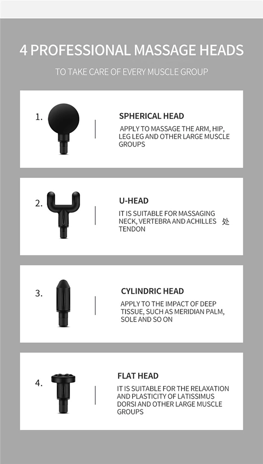 1 х массажные мышечные пистолеты4 массажные головки1 X USB1 х Руководство пользователя