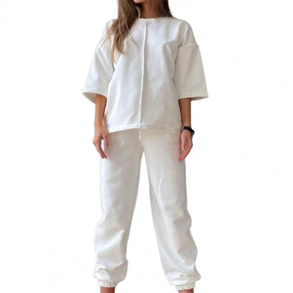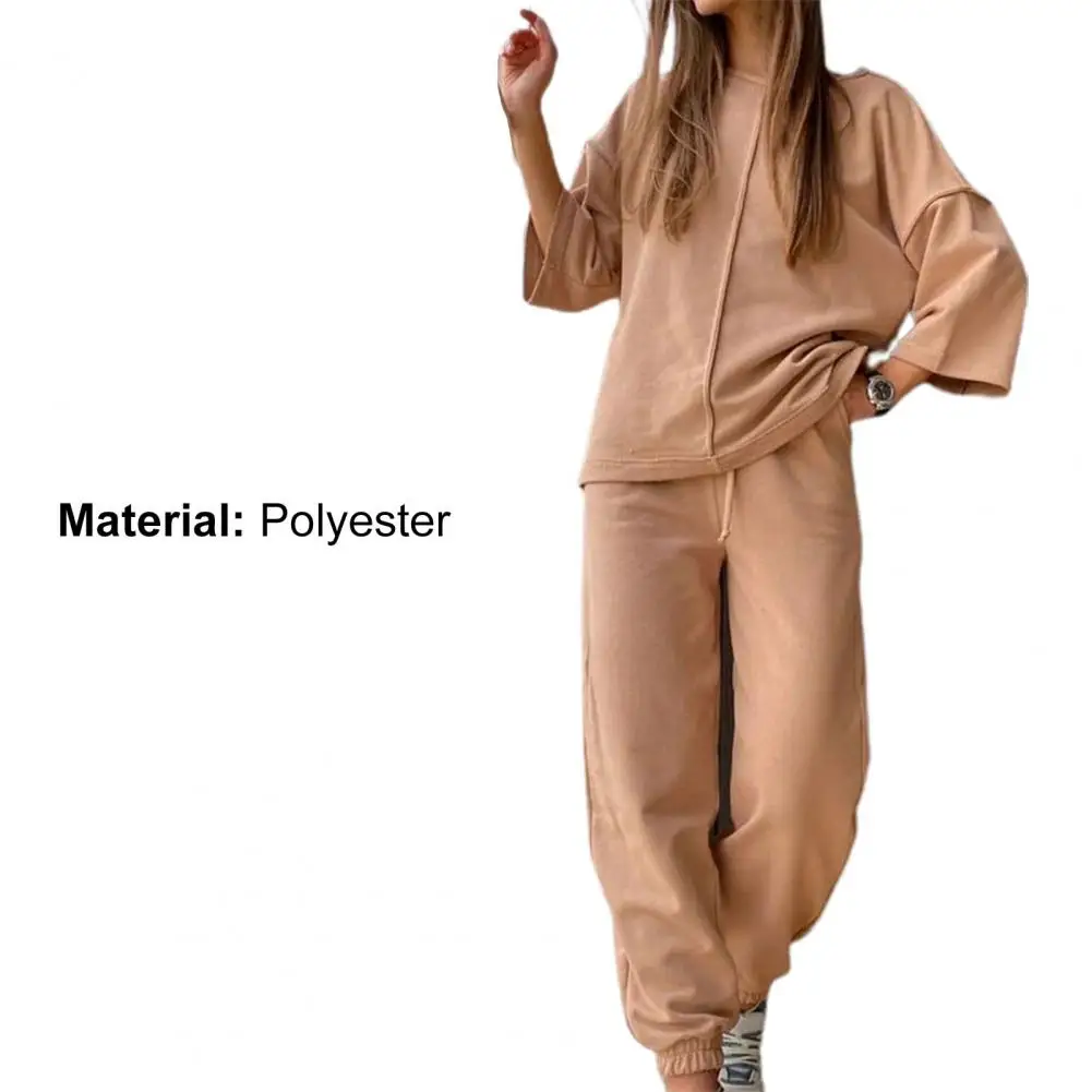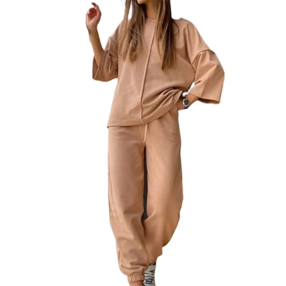 Модный новый свободный женский спортивный костюм 2021, однотонный спортивный костюм с ремешком на щиколотке и рукавом три четверти, мягкий и удобный, с кулиской пота