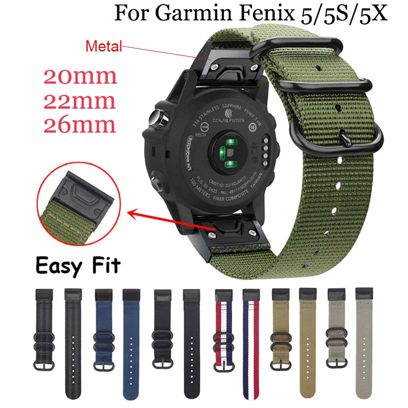 Ремешок для часов Garmin Fenix 6X 6 6S Pro 5X 5 5S Plus 3 3HR, нейлоновый, 26, 20, 22 мм