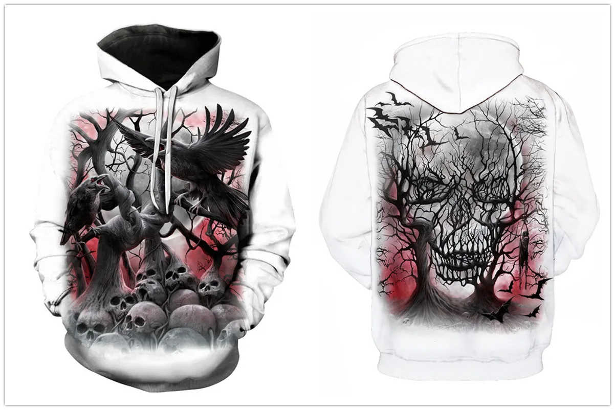 Осень 2021, мужские толстовки с 3D ужасным узором, модная Толстовка...