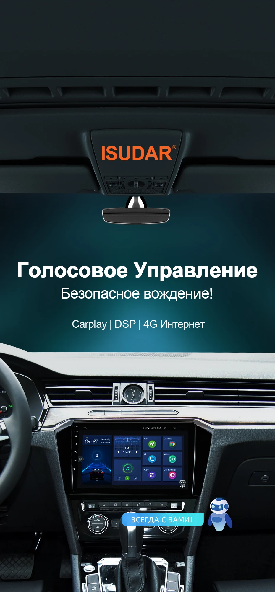 Автомобильный радиоприемник ISUDAR V57S с голосовым управлением на ...