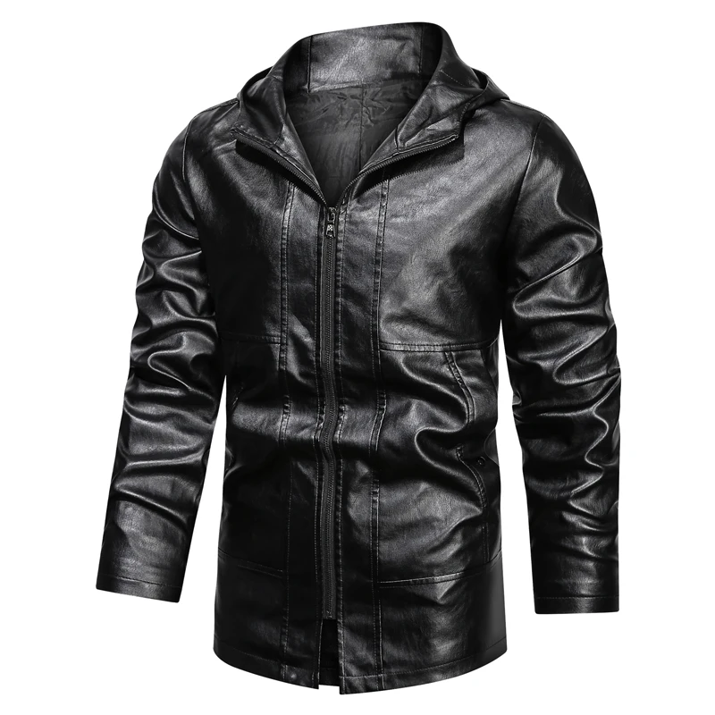 Мужские длинные кожаные куртки с капюшоном Толстовка куртка-бомбер ...