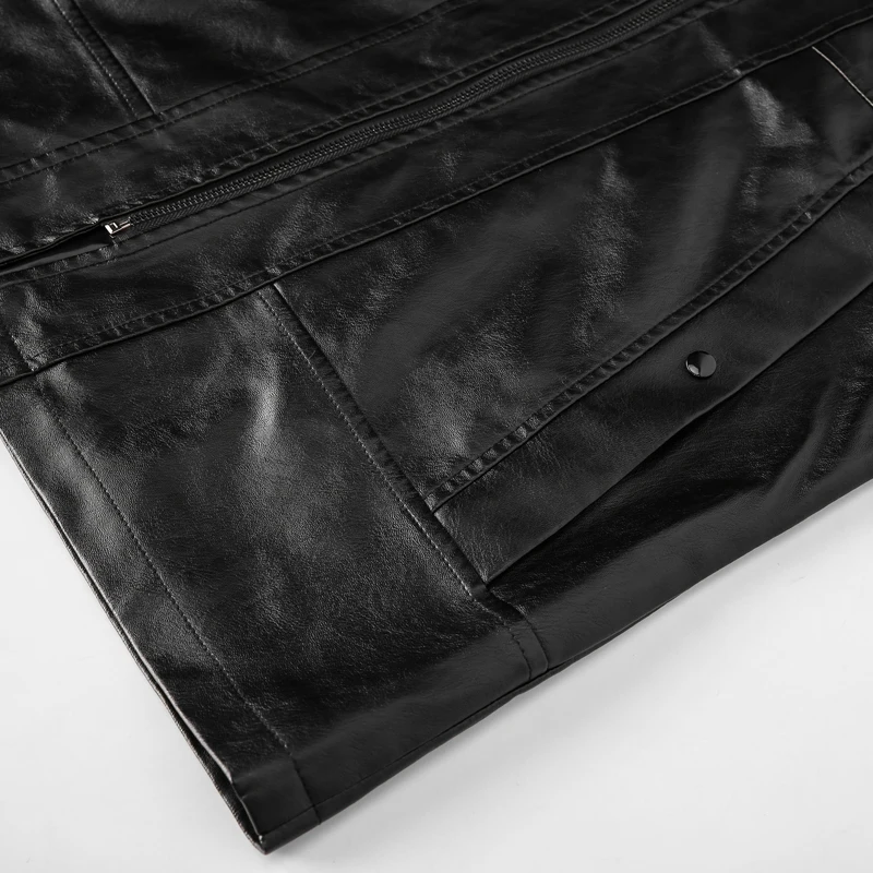 Модная зимняя длинная куртка из искусственной кожи, мужские брендов...