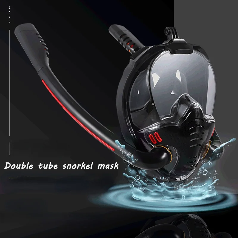 Маска для подводного плавания с двойной трубкой, силиконовая полноразмерная сухая маска для дайвинга с аквалангом, плавательное оборудование для взрослых